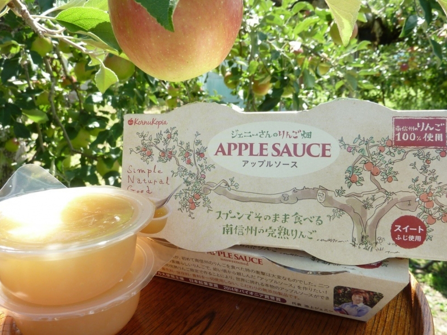 アメリカで昔から親しまれている「アップルソース」(煮りんごをすり潰した状態のこと)を、信州りんごで日本の食卓に紹介したいとの一心で自らりんご栽培に取り組み、砂糖・保存料・着色料一切不使用の完熟ふじりんご100%のアップルソースを作りました。製法にもこだわり、果肉の程よい食感と自然の甘みを最大限に活かしたアップルソースはスプーンでそのままお召し上がりください。1カップおよそリンゴ1個分! 0歳~100歳まで誰でも、いつでも、どこでもお召し上がりいただけます。