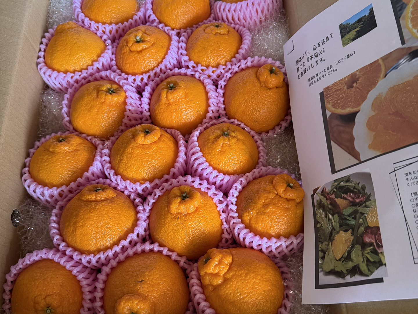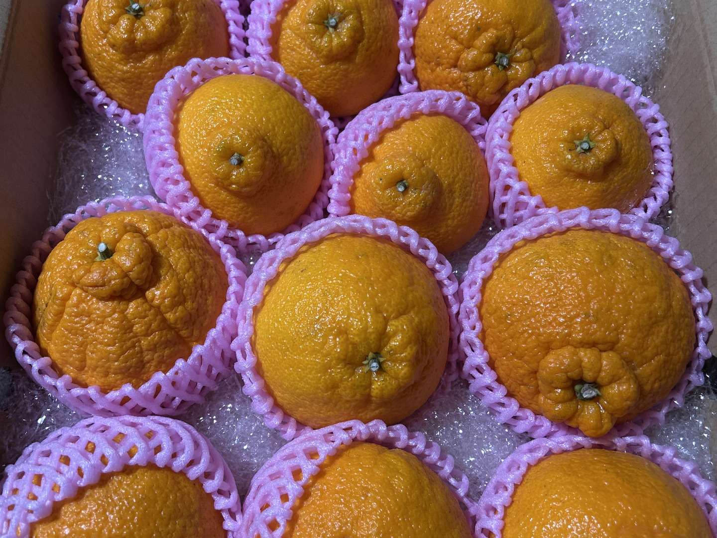 露地栽培の不知火は強い酸味と濃い味が特徴です。ですが追熟する事によって酸味が抜け甘さが引き立ち、水分も抜け濃厚な味わいへと変化していきます(味の個体差あり)