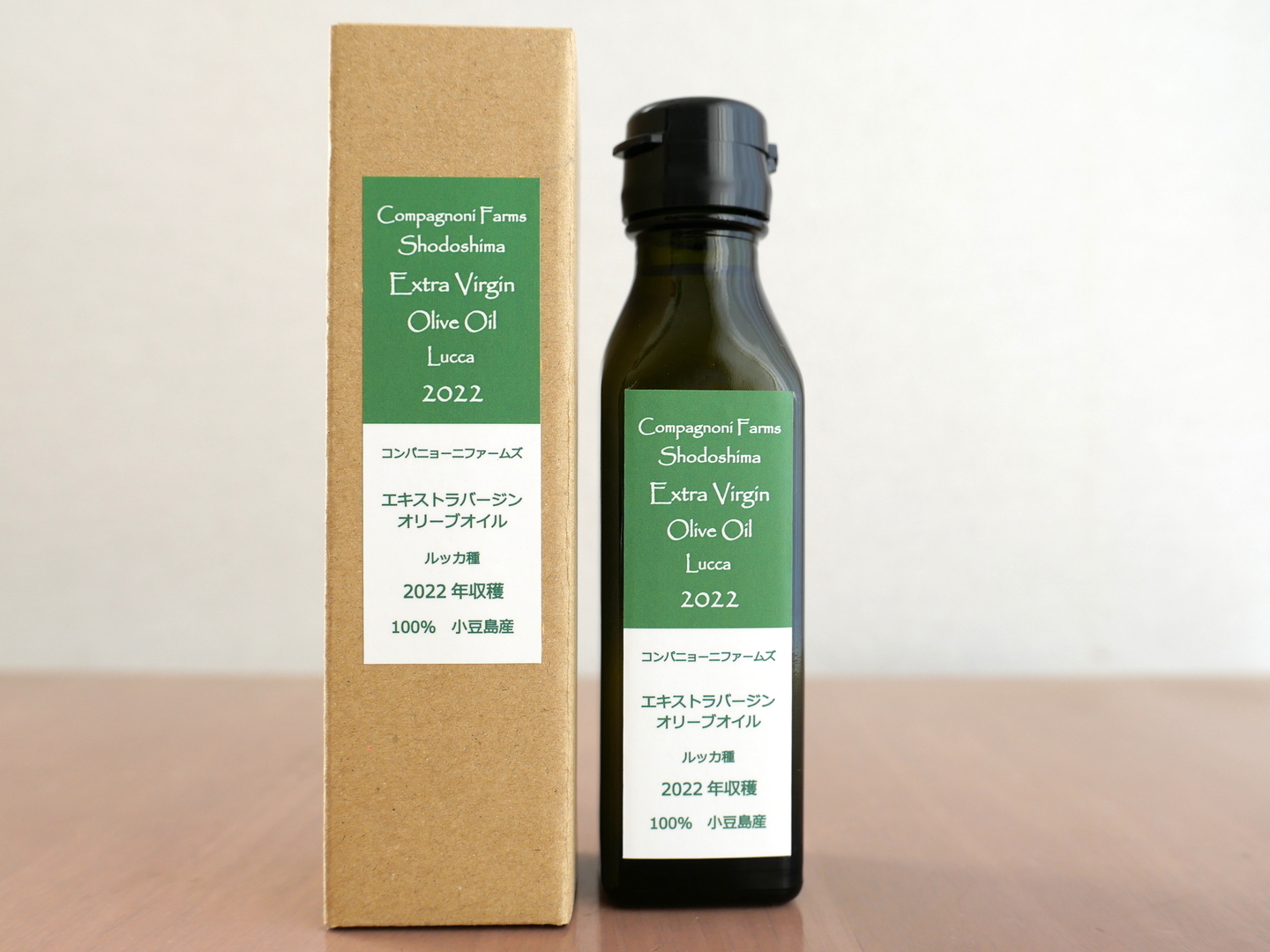 小豆島にあるの自社農園で収穫したオリーブ果実の中でも「ルッカ種」だけを使ったエキストラバージンオリーブオイルです。