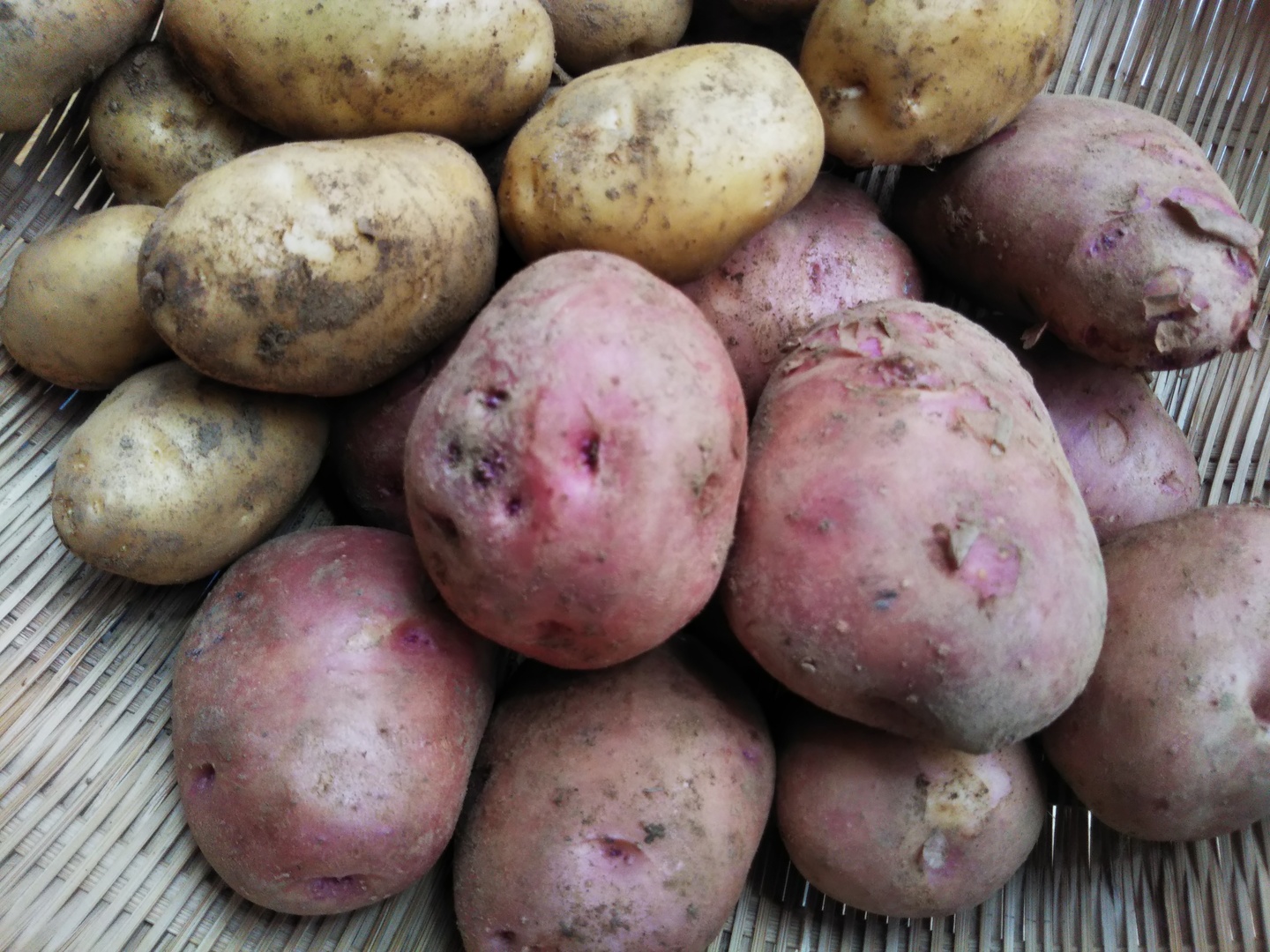 【秋採りの新じゃが】 伝説のじゃが芋【珍しいじゃが芋:ごうしゅ芋】紅白ごうしゅ芋各500gセットでお届け。 徳島県 にし阿波地方の伝統的なじゃが芋。長く保存できるように「土付きのまま」届ます。