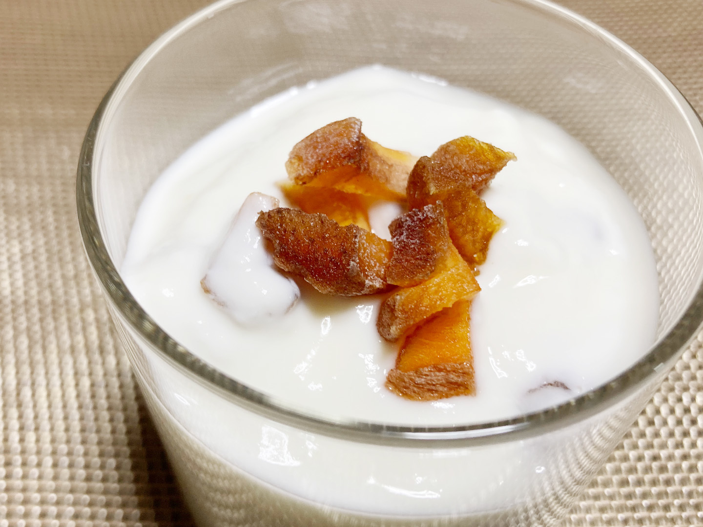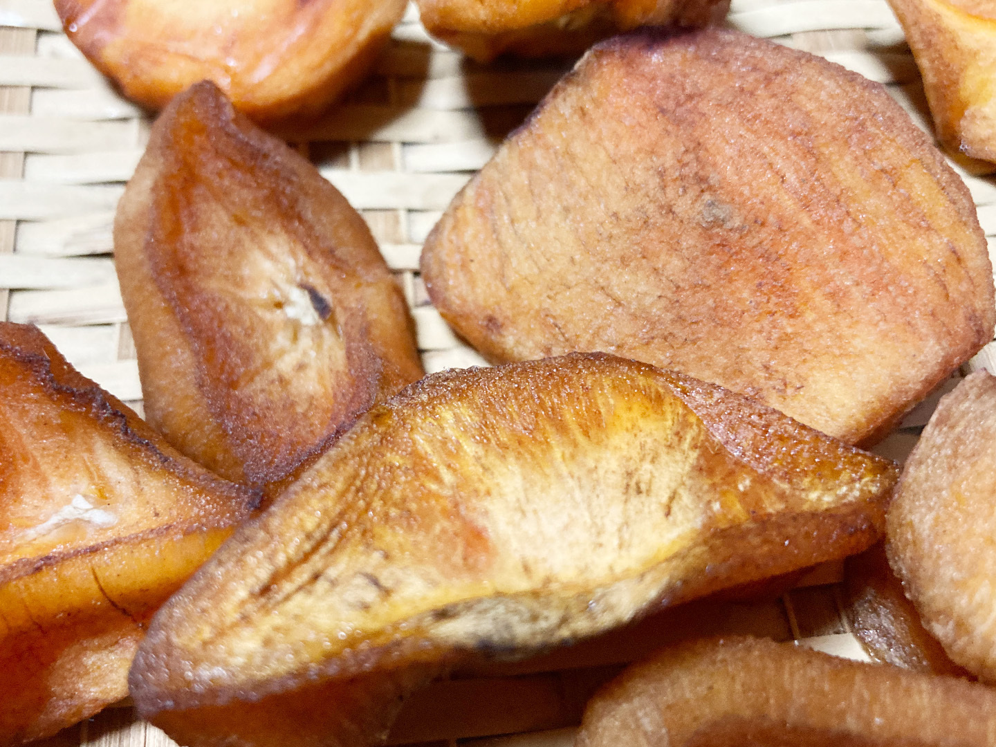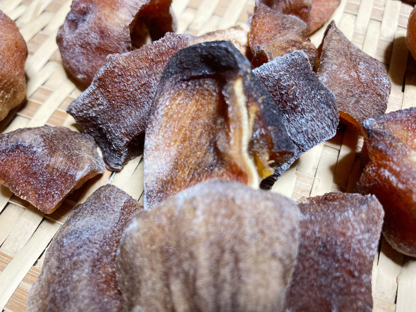 こちらは福島産の蜂屋柿という渋柿です。あんぽ柿に使われる渋柿ですが、硫黄を使わずそのまま干しました。