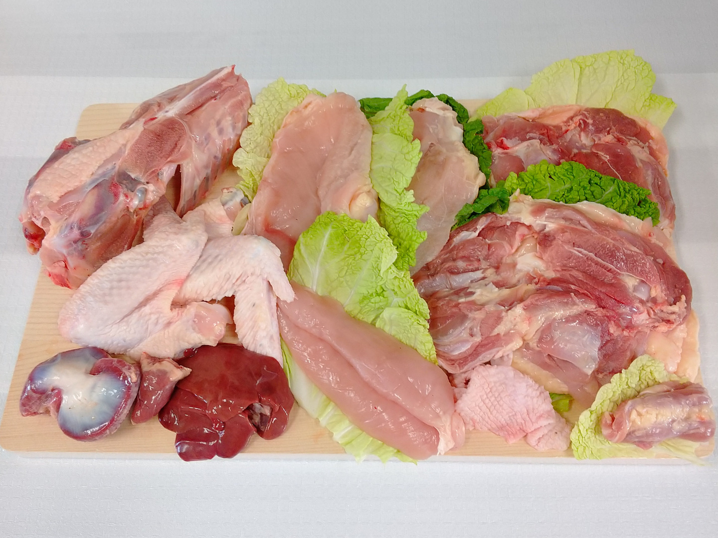*1羽分ずつ部位別に真空パックを行い、1羽分ずつビニル袋で包装致します。(写真は1羽分の量になります。)