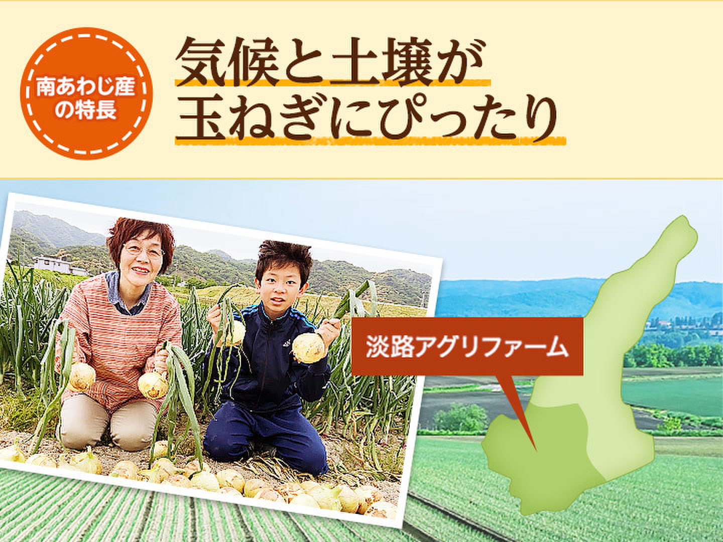 玉ねぎの名産地である淡路島の南あわじ市で愛情を込めて減農薬で栽培した甘旨たまねぎです。