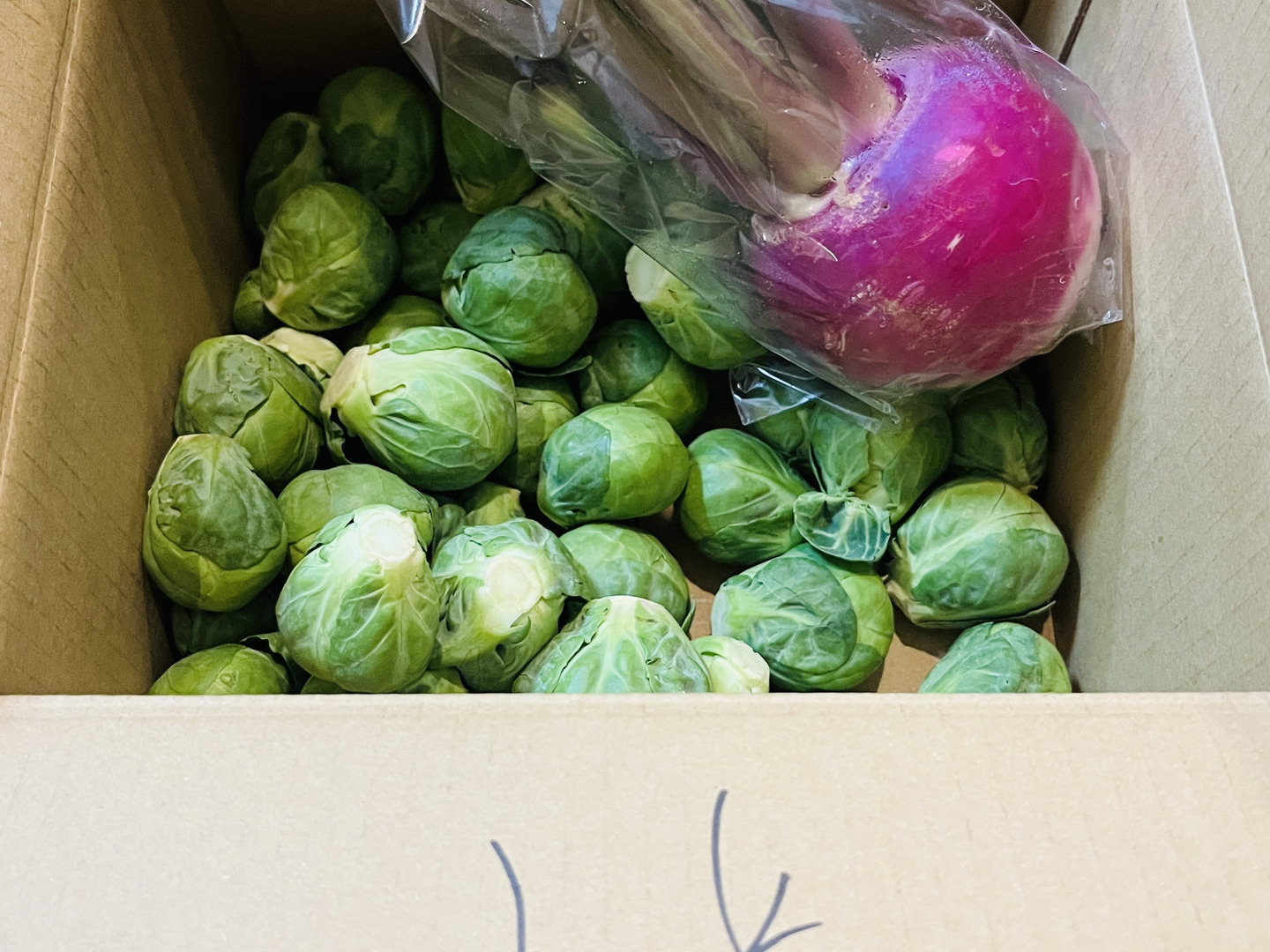 ・今時期の芽キャベツですが、寒さによりアントシアニンが活性化され中央部が紫色~黒色に変色しております。(加熱時は黒~茶にもなります)