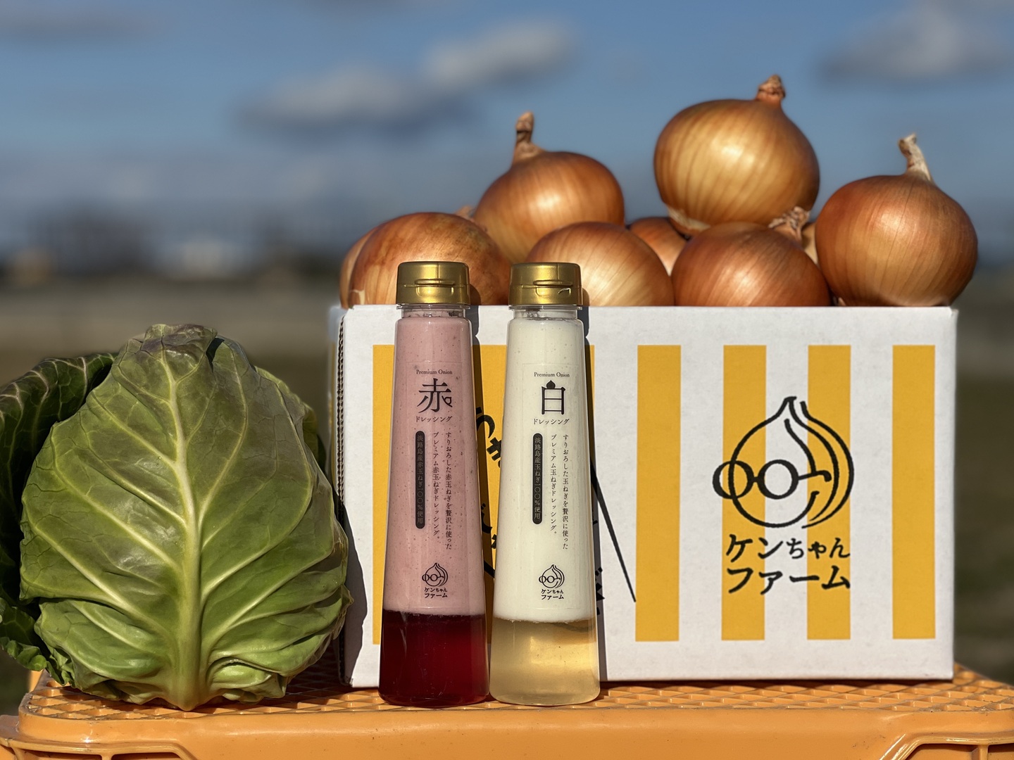 【ケンちゃんファームのお試しセット】大人気♪グリーンボール1玉&特別栽培淡路島玉ねぎ3キロ&プレミアム淡路島玉ねぎドレッシング「赤・白」