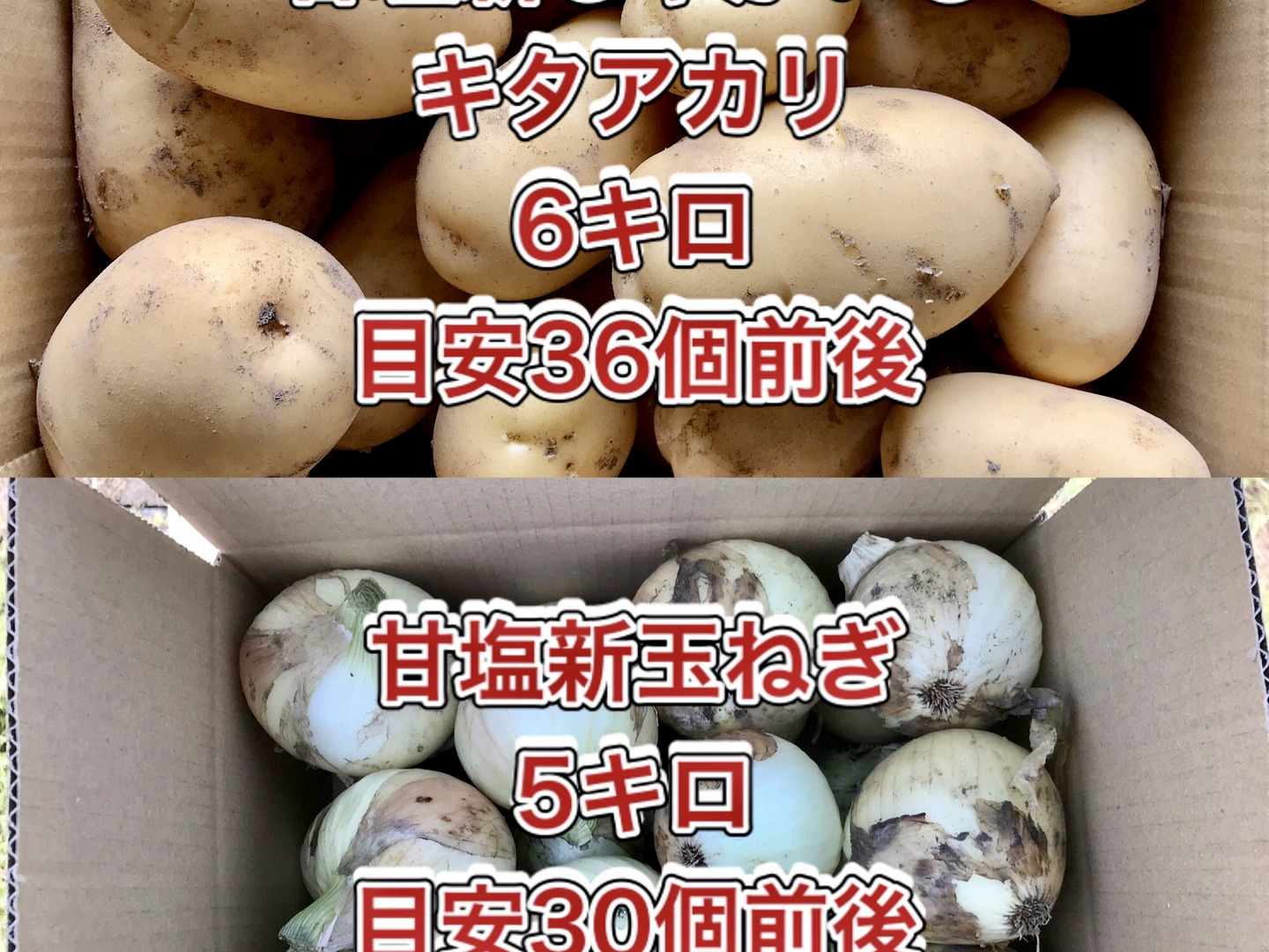 鹿児島産のじゃがいも(キタアカリ)6キロ前後・新玉ねぎ5キロ前後注文を受けてから、収穫日に収穫した箱込み11キロ前後を畑の空気も収穫しながらAB品大中小混合箱詰めして、当日発送します^_^