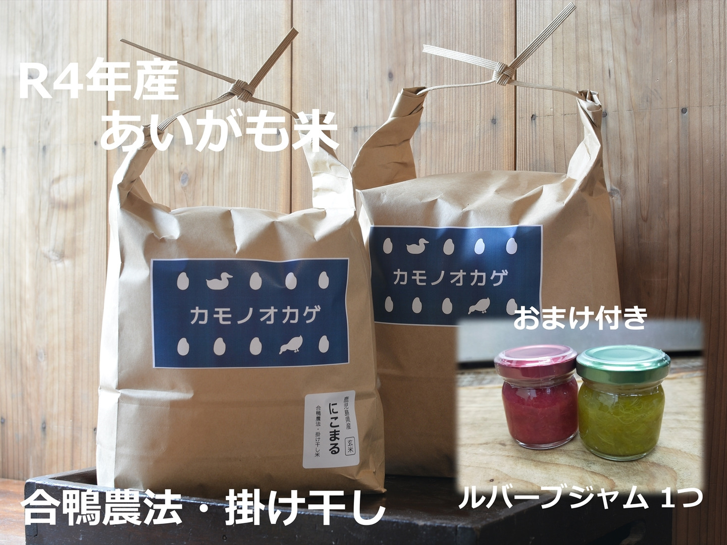 【数量限定】令和4年産 あいがも米 玄米 5kg+ ルバーブジャム1個のおまけ付き
