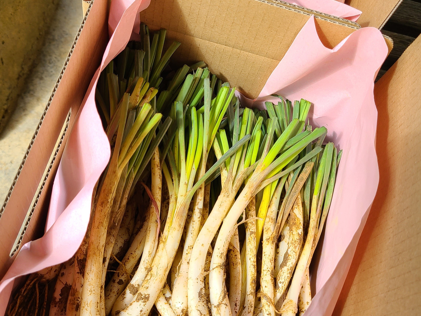 本土で収穫されるラッキョウと比べると小ぶりで辛味が強いです。