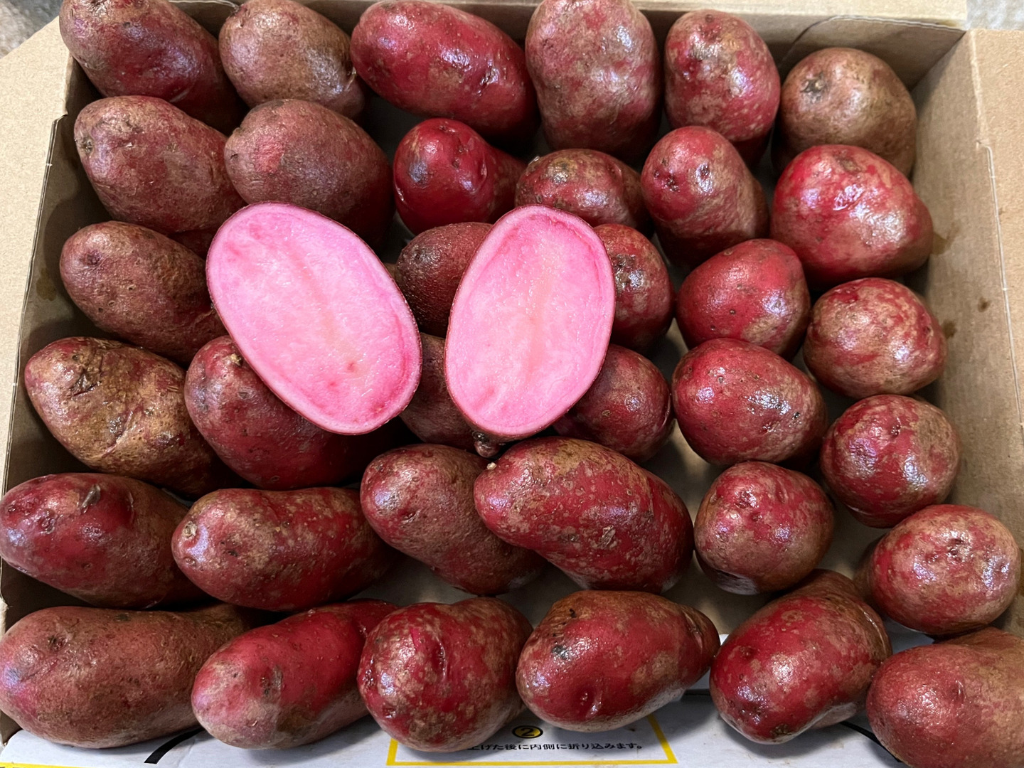 元種芋農家(種用のじゃがいもは国の貿易検査官がする非常に厳しい審査をクリアしなければならない)の経験があるから出来る、病気株の抜き取りや種の植え方などで通常21回程必要な農薬散布を最低限の4回のみにおさえたじゃがいもです。