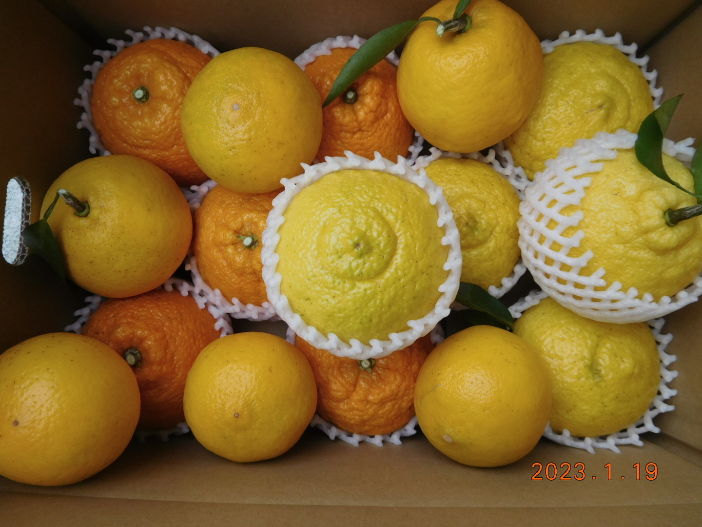 | 内容 | デコ(不知火)・はるか・伊豆の春(はるひ)の3種 大小混合5㌔箱に正味4.0㌔入り | ||||||