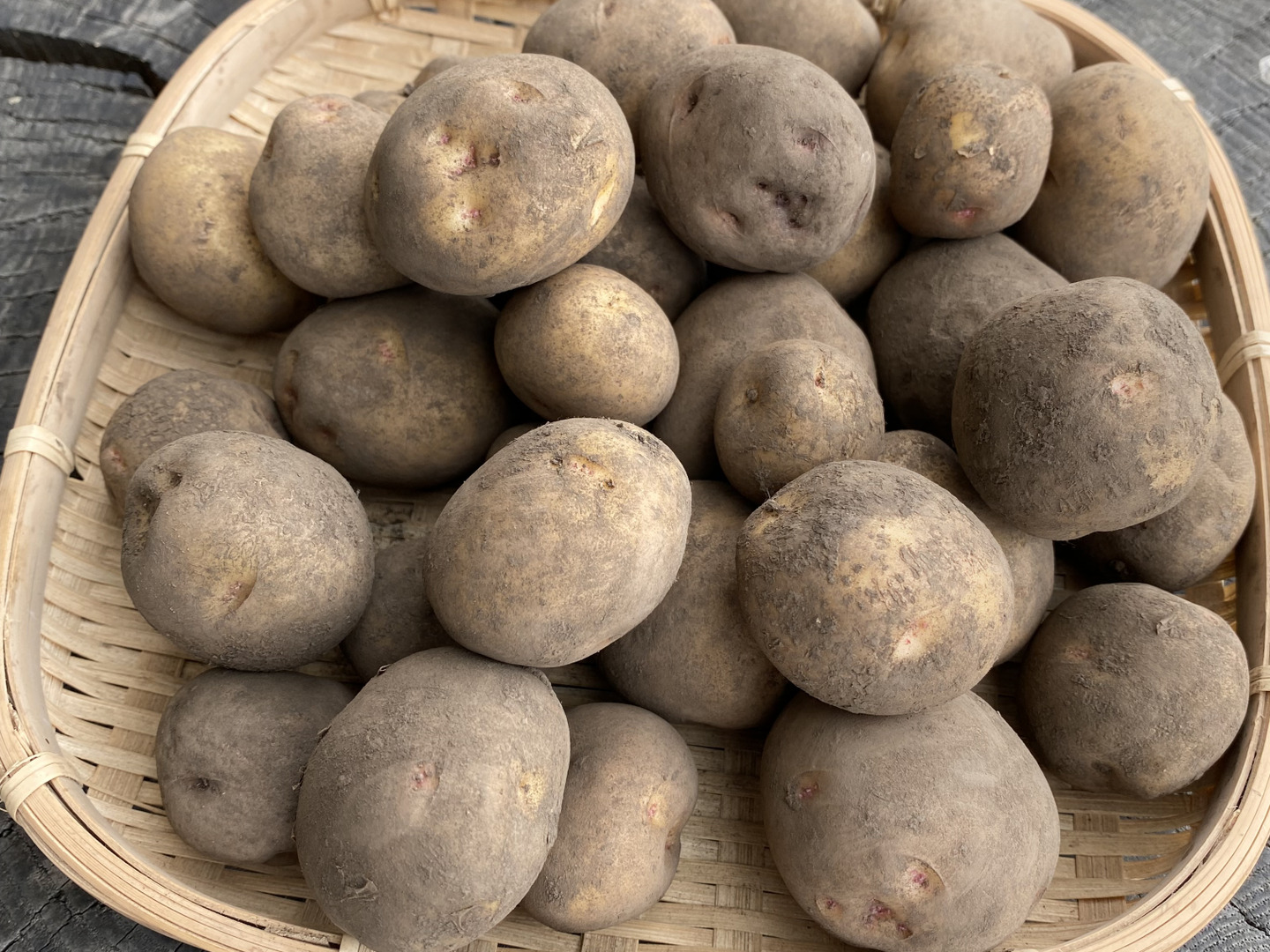 今年のじゃがいもは、全体的に大きくならず、小さい小芋でのお届けです。