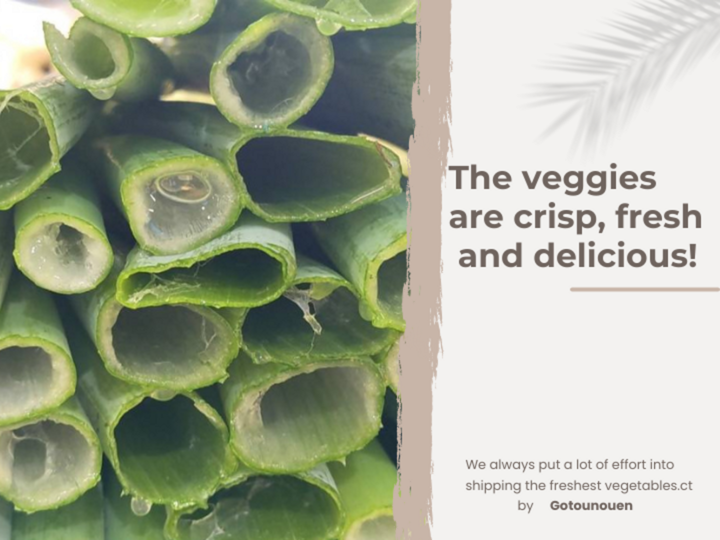 味 葉の部分は辛く薬味として使用。白い部分は根元に近いほどトロっとして甘いです。嚙んだ瞬間、ジュワっとうまみと甘みが口の中でブレンドされ至福の時を堪能できます。(特に焼き葱で味わえます焼き方はブログをご覧ください)