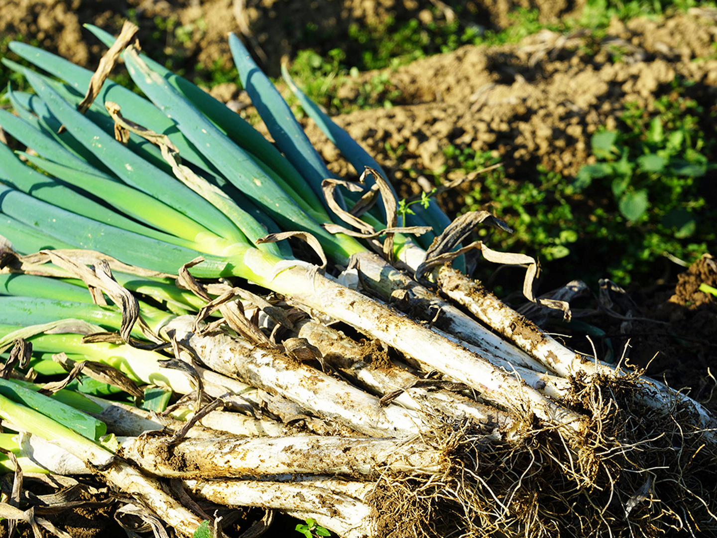 カマシチねぎ屋では、作業効率よりも美味しさを追求したネギ栽培が行っています。根の活着が悪くなる除草剤を使わずに、広大な面積のねぎ畑を手間ひまかけて管理する事で、ネギにストレスを与えずに極力自然な状態で成長を促します。収穫が近づくと、畑から抜いたネギをそのまま生で食べて、味や糖度、口あたりを確かめます。そうすることで、最適な出荷のタイミングを確実に見極めています。