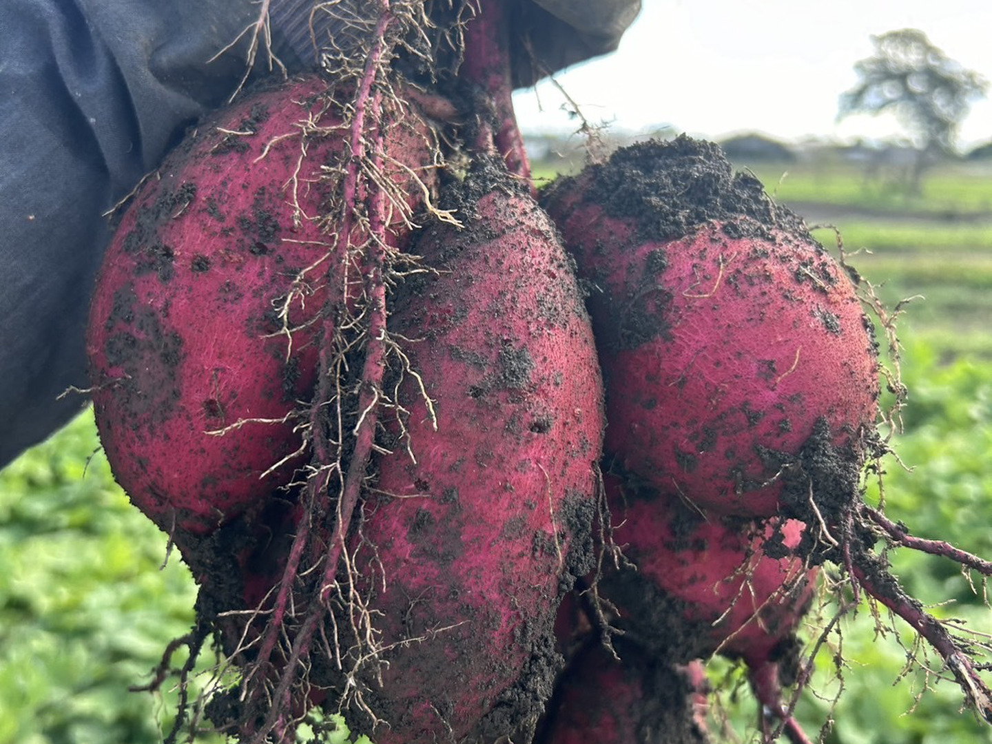 ◯シルクスイートは、その名のとおり絹のようなきめでなめらかさが特徴で、繊維質も比較的少なく焼きいもにするには最高峰の品種です。