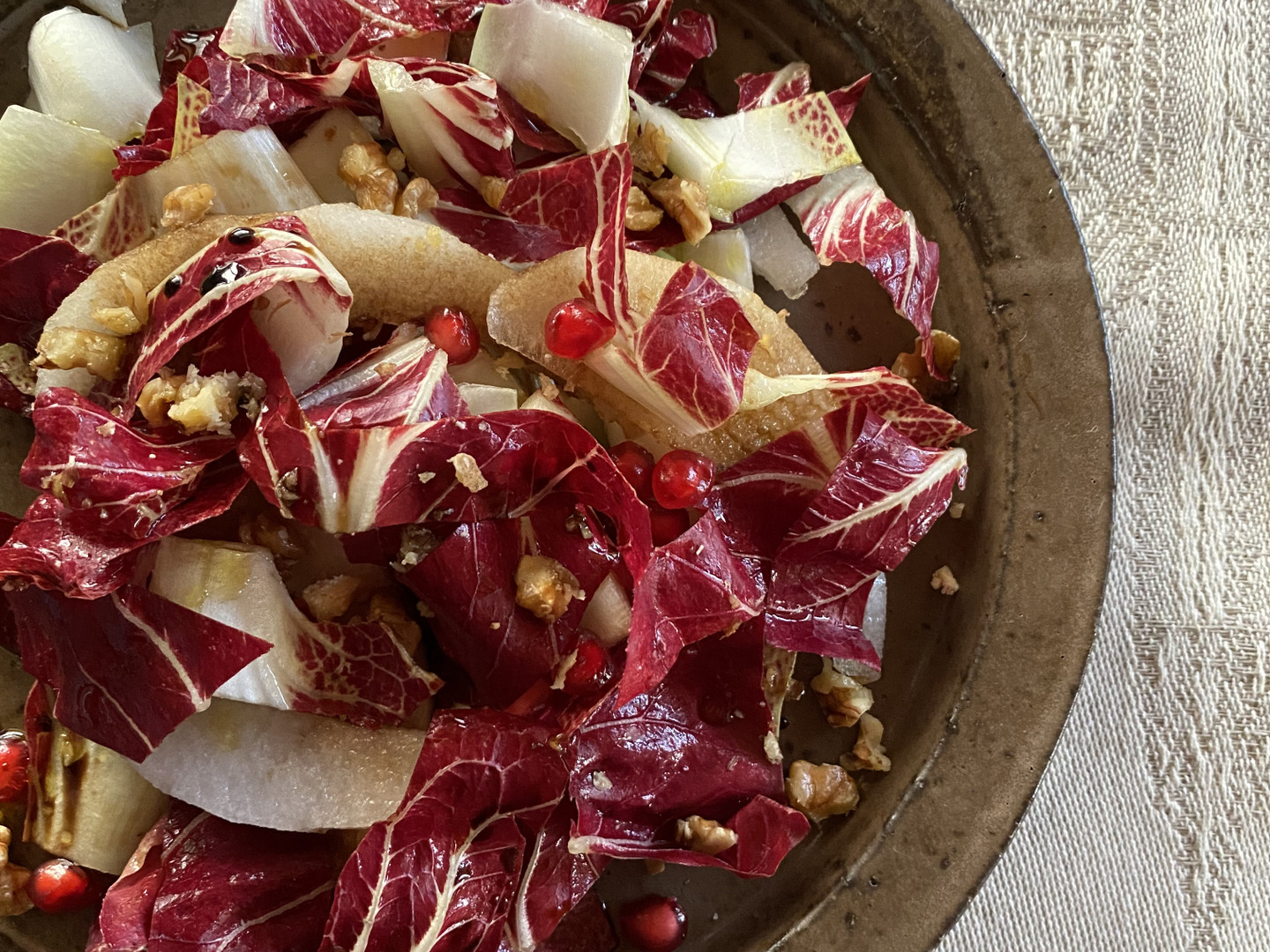 苦味が特徴のトレビス、シンプルにオリーブオイルとお塩で、またはお好みのドレッシングで、サラダに。