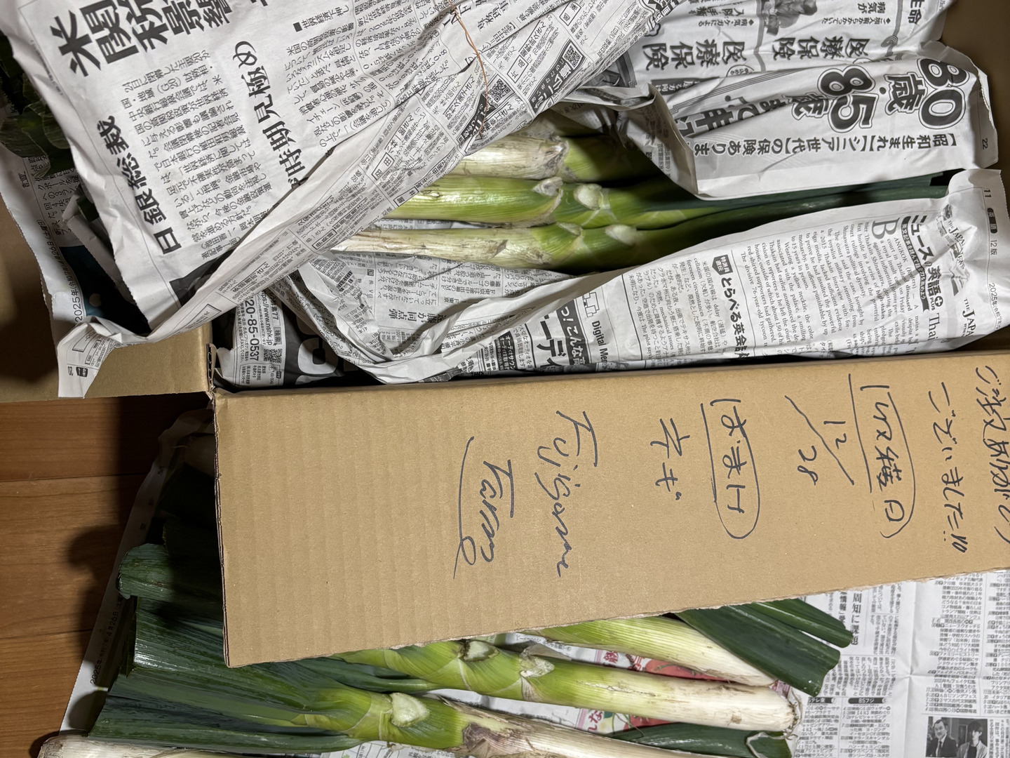 当農園がお送りするネギは根や葉が短く切れても、ゆっくりと生長しています。そのため、涼しく直射日光が当たらない場所でお送りするダンボールに入れるか、新聞紙で包んで保管するのがオススメです。