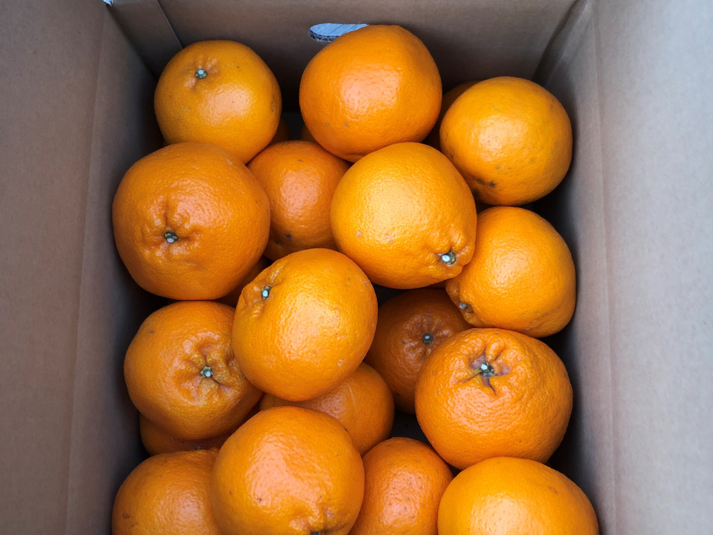 はるみみかんサイズミックス 8kg(24~45個)を箱詰めしました。品質保証分も含め、10kgのダンボールで出荷します。
