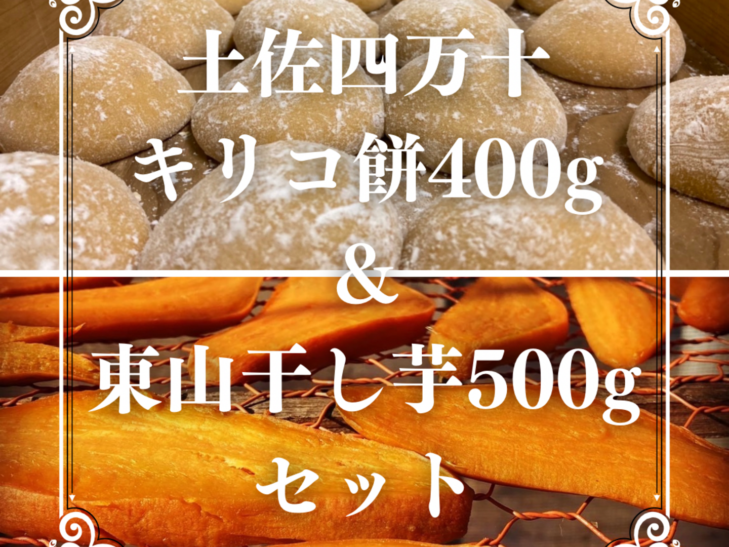 こちらはキリコ餅400gと東山干し芋500gのセット商品になります。