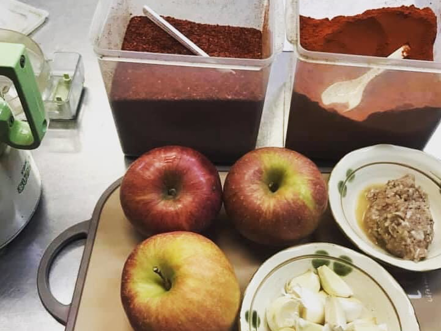 生鮮品と違い、加工品は一定の味を求められるのが当たり前ですが、素材の味を最大限に引き出す風来だからこそ、キムチで旬を感じてもらいたい。白菜、大根の甘みも増してきました。そしてこの時期はタレのベースにりんごにプラスして梨を入れました。和梨のさわやかさは日本人にもぴったりな味わいです。まさにこの時期だけのキムチをぜひ♪