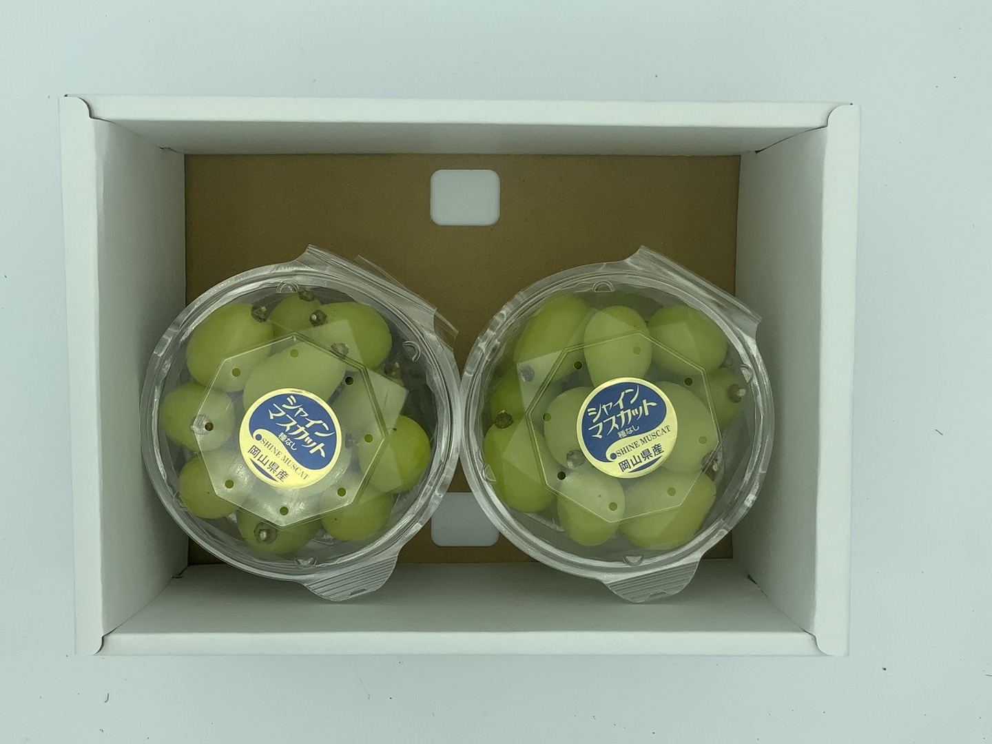 その摘み落とした氷温®ぶどうのシャインマスカットをパックに詰めました。1パック160g前後を4パック。