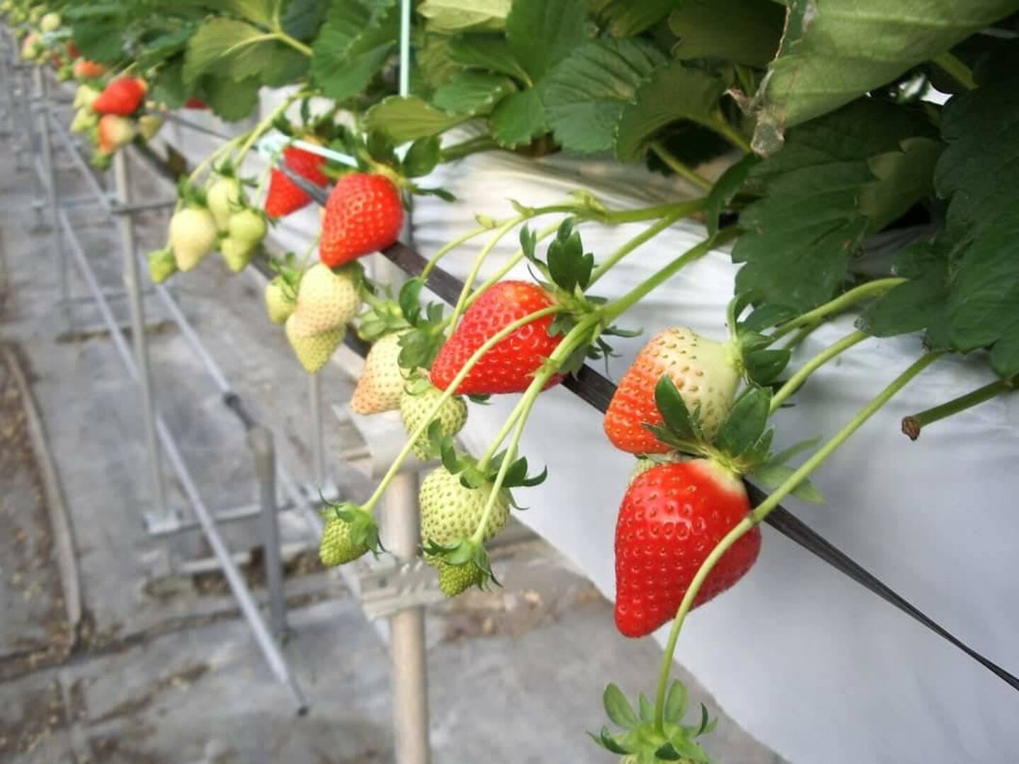 高設栽培にて生産することで衛生面にも配慮して栽培しております。イチゴにはツルがついた状態で収穫することで、直接果実に触れることを極力低減しております。