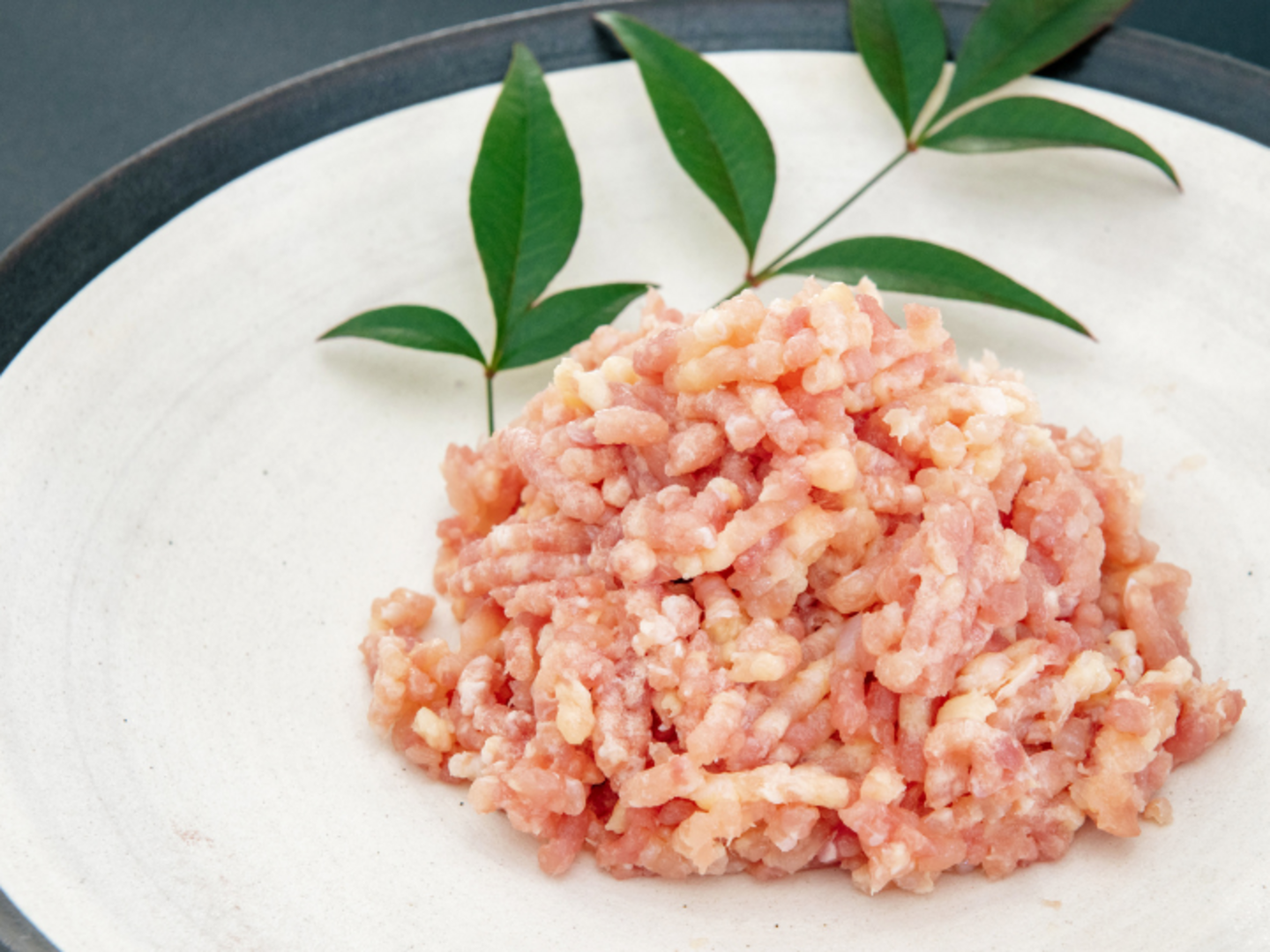 大人向けの味わいが特徴のむねミンチに比べ、もも肉の油などがありジューシーで柔らかい味わいに。