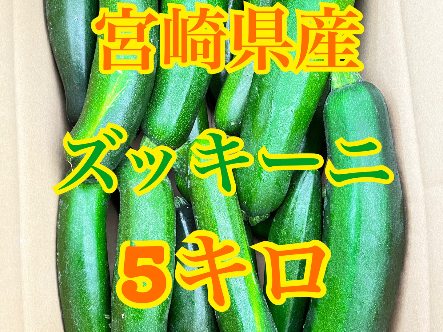 ご覧いただきありがとうございます。宮崎県産の朝獲れズッキーニを農家直送で5キロ(箱込み)になります。大きさが100g未満のものから1キロ近くあるものもありばらばらです。
