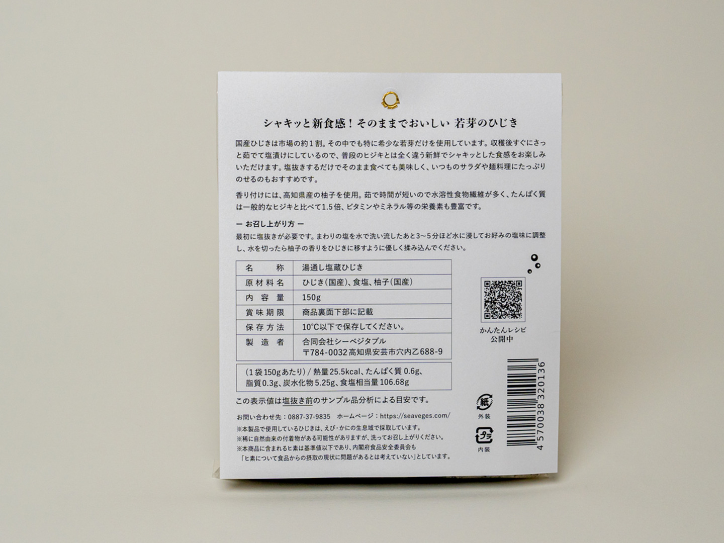 収穫後すぐにさっと茹でて塩漬けにしているので、普段のヒジキとは全く違う新鮮でシャキっとした食感をお楽しみいただけます。