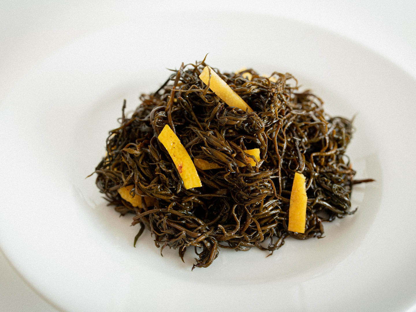まわりの塩を水で洗い流したあと3~5分ほど水に浸してお好みの塩味に調整し、水を切ったら柚子の香りをヒジキに移すように優しく揉み込んでください。入っている柚子皮もお料理にご使用いただけます。