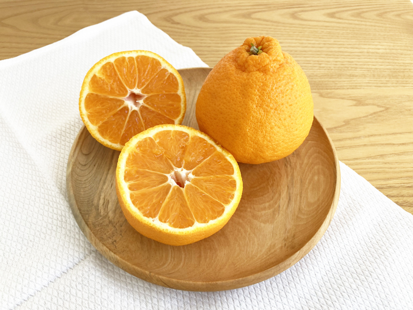 頭にコブのような形があるのが特徴です。このコブの事を=デコと呼びます。橙色で柔らかく水分も多く含む果実は、口当たりもよく食べやすいです。