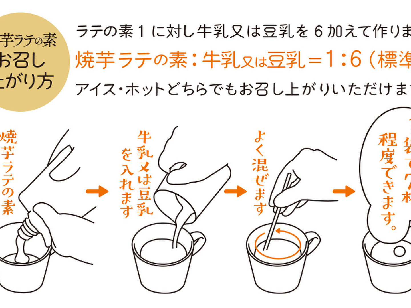 - 1袋で約7杯の芳醇な焼芋ラテができます。
