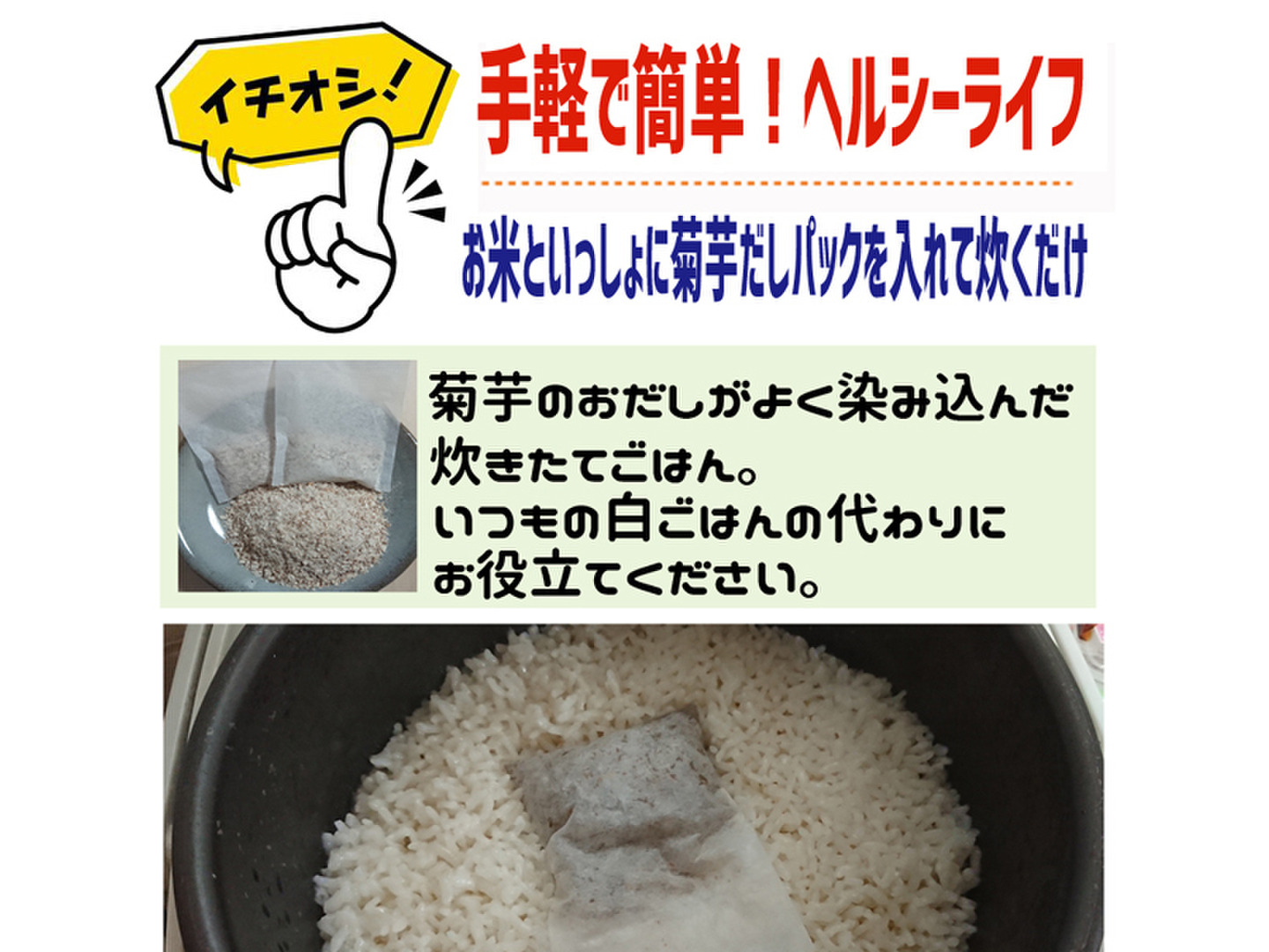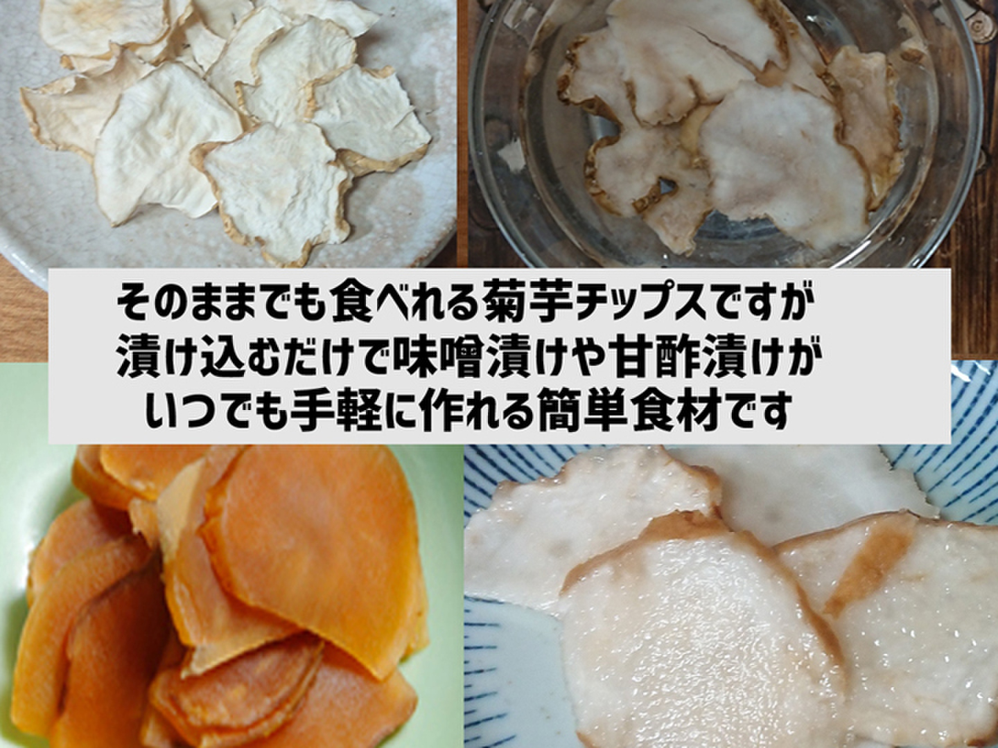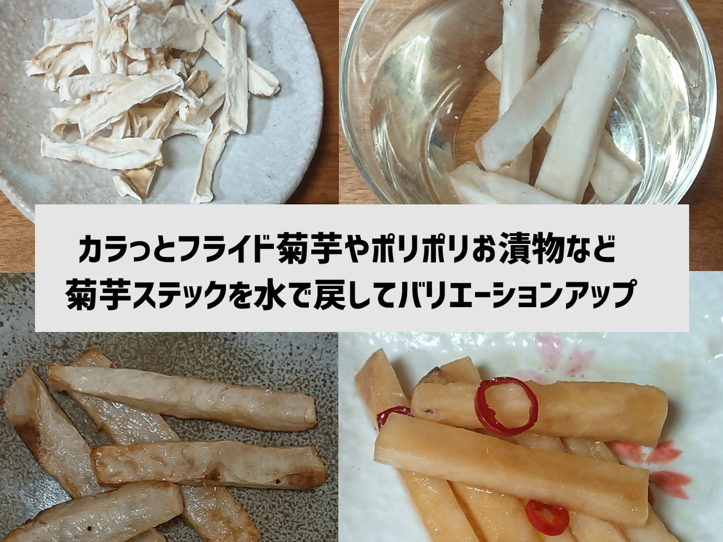 - 乾燥キクイモは水で戻せば5倍の大きさになります