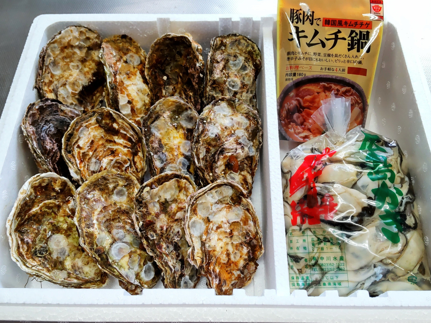 内容 【加熱用】殻付き牡蠣12ヶ+【生食用】むき身700g+土手鍋のもと(またはキムチ鍋のもと))