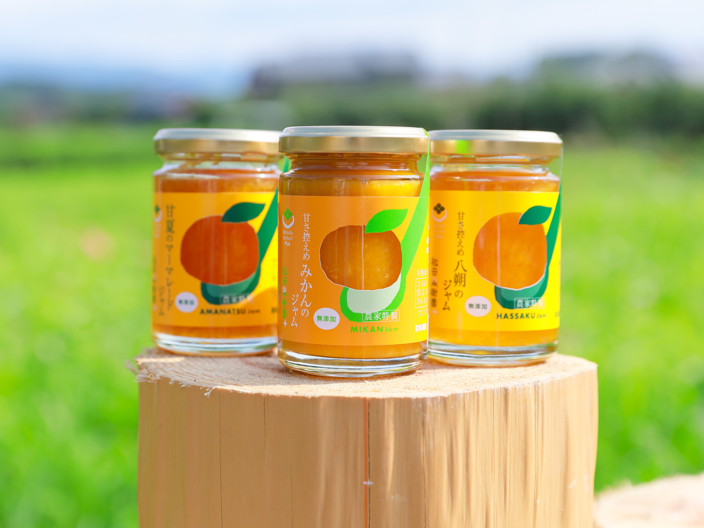 【ギフト】にぴったり、ていねいにコトコト炊いて甘すぎないジャム三姉妹。みかんジャム、八朔ジャム、甘夏ママレードジャム、気持ちを届けるのに、ちょうどいいサイズ!