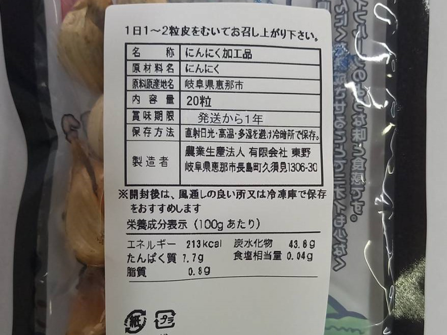 岐阜県恵那市で栽培されたにんにくを「黒にんにく」へ独自熟成加工。