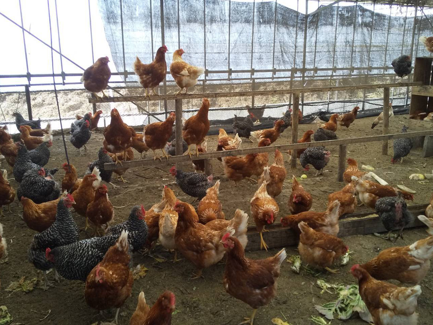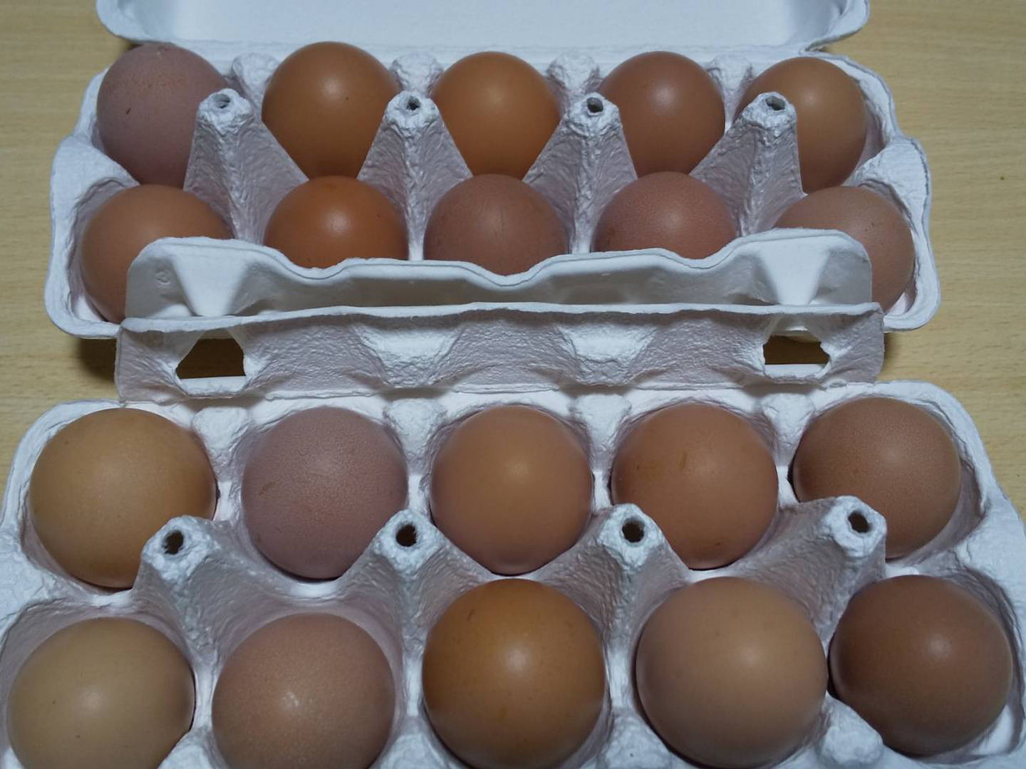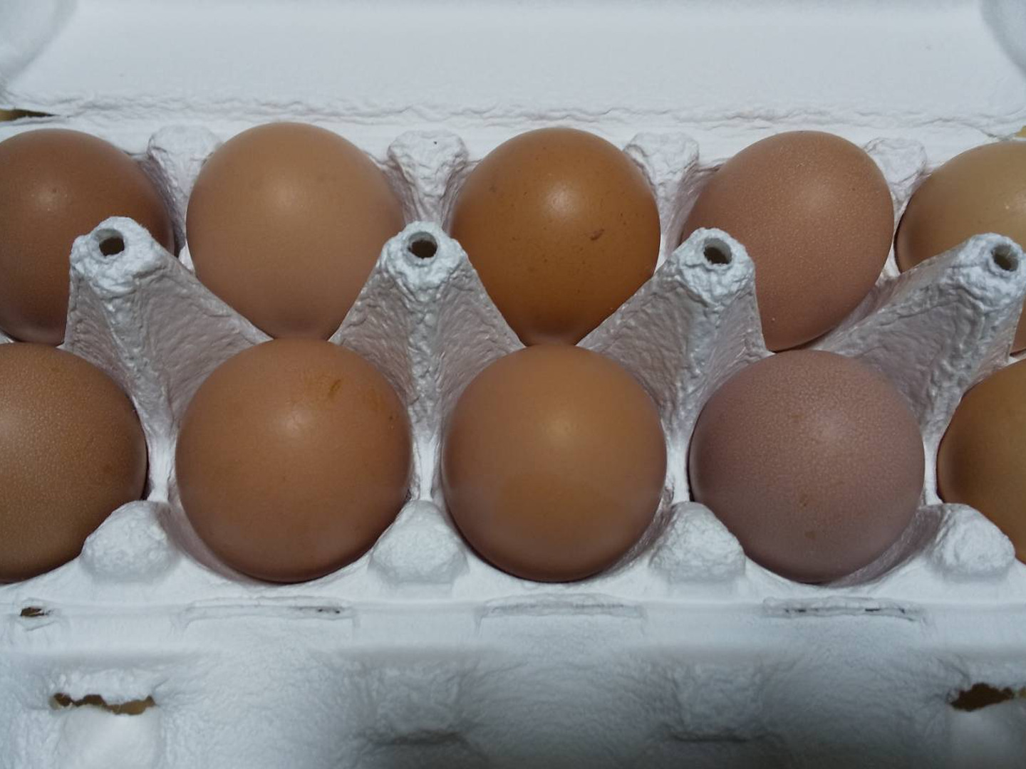 浅子ファームで平飼いをしている国産もみじと岡崎おうはんの卵です。