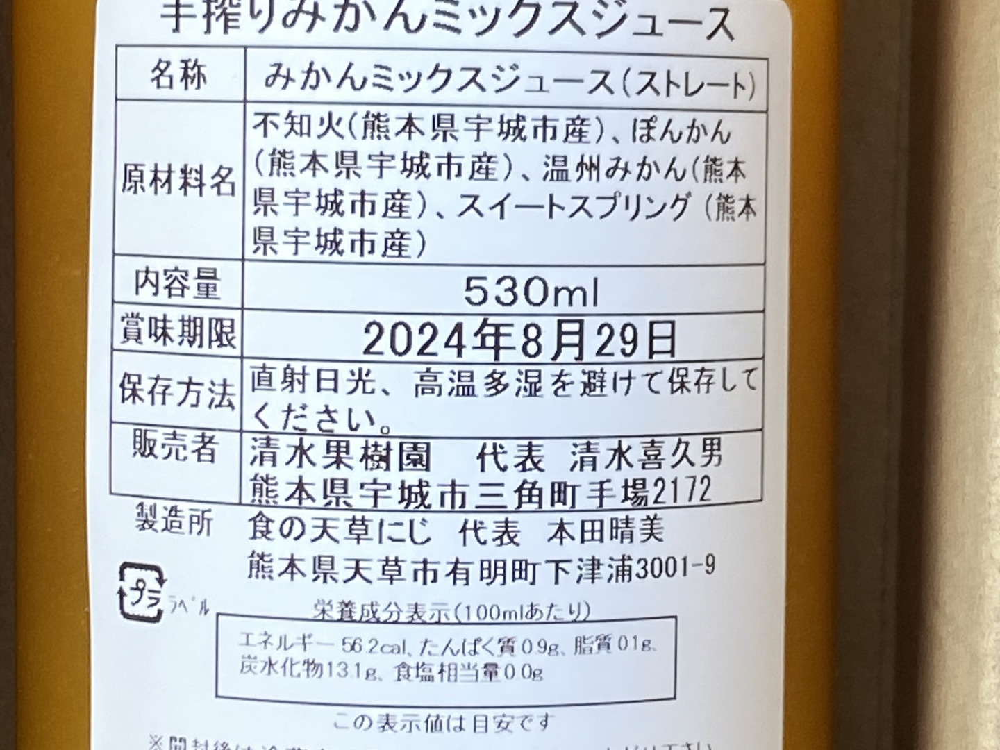 【夏ギフト】 清水果樹園自慢の不知火デコみかん、スイートスプリング、青島みかん、ぽんかんをぎゅーと絞り100%ジュースにして詰め込みました。砂糖不使用、無添加です。 530ml 2本入り