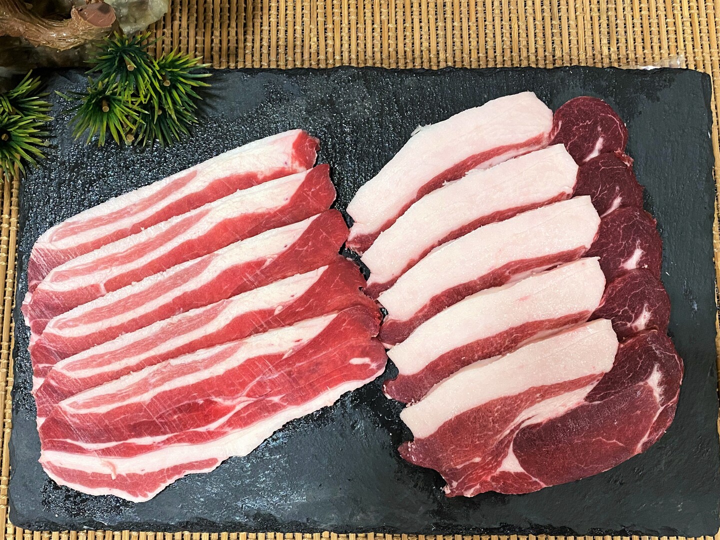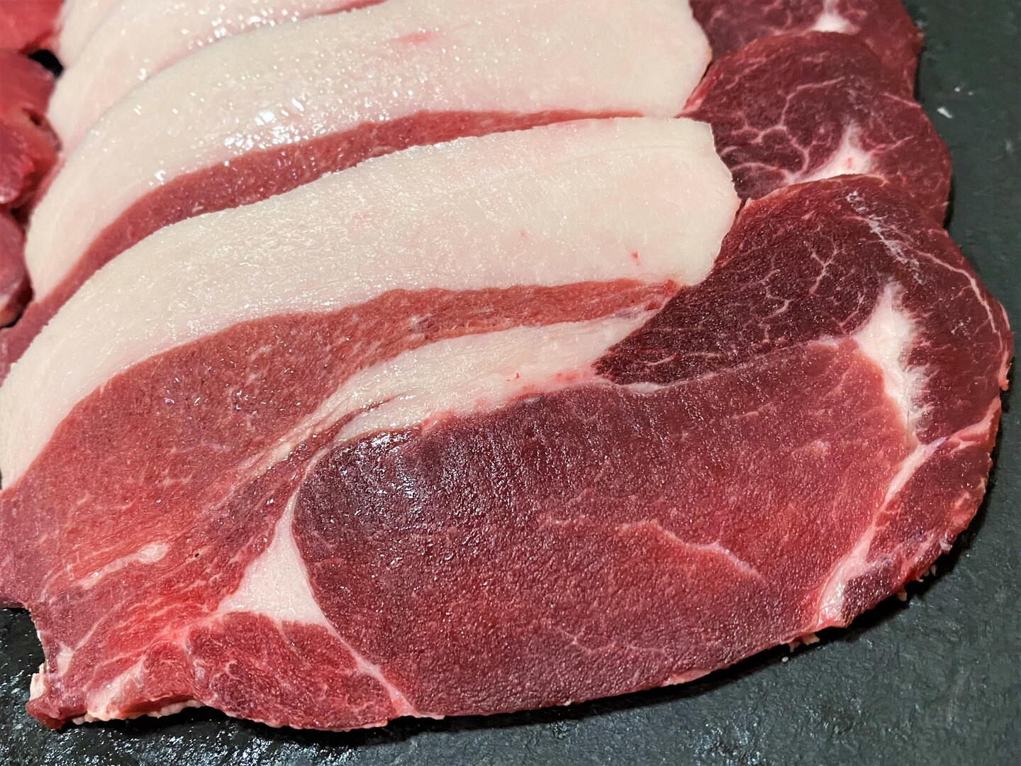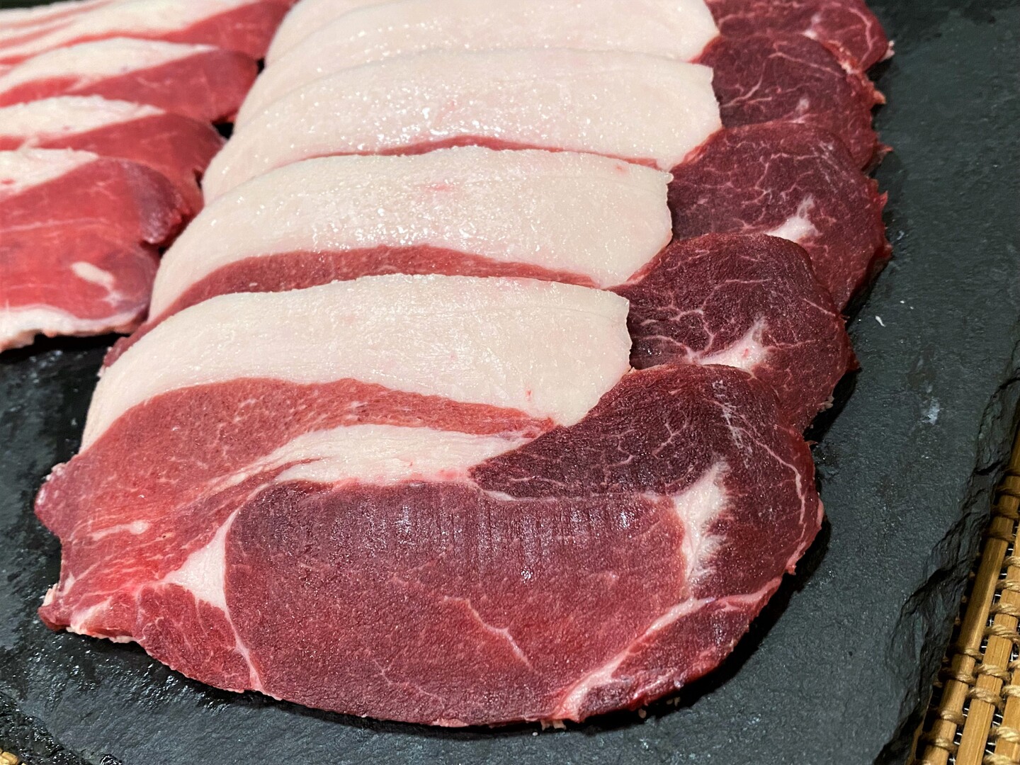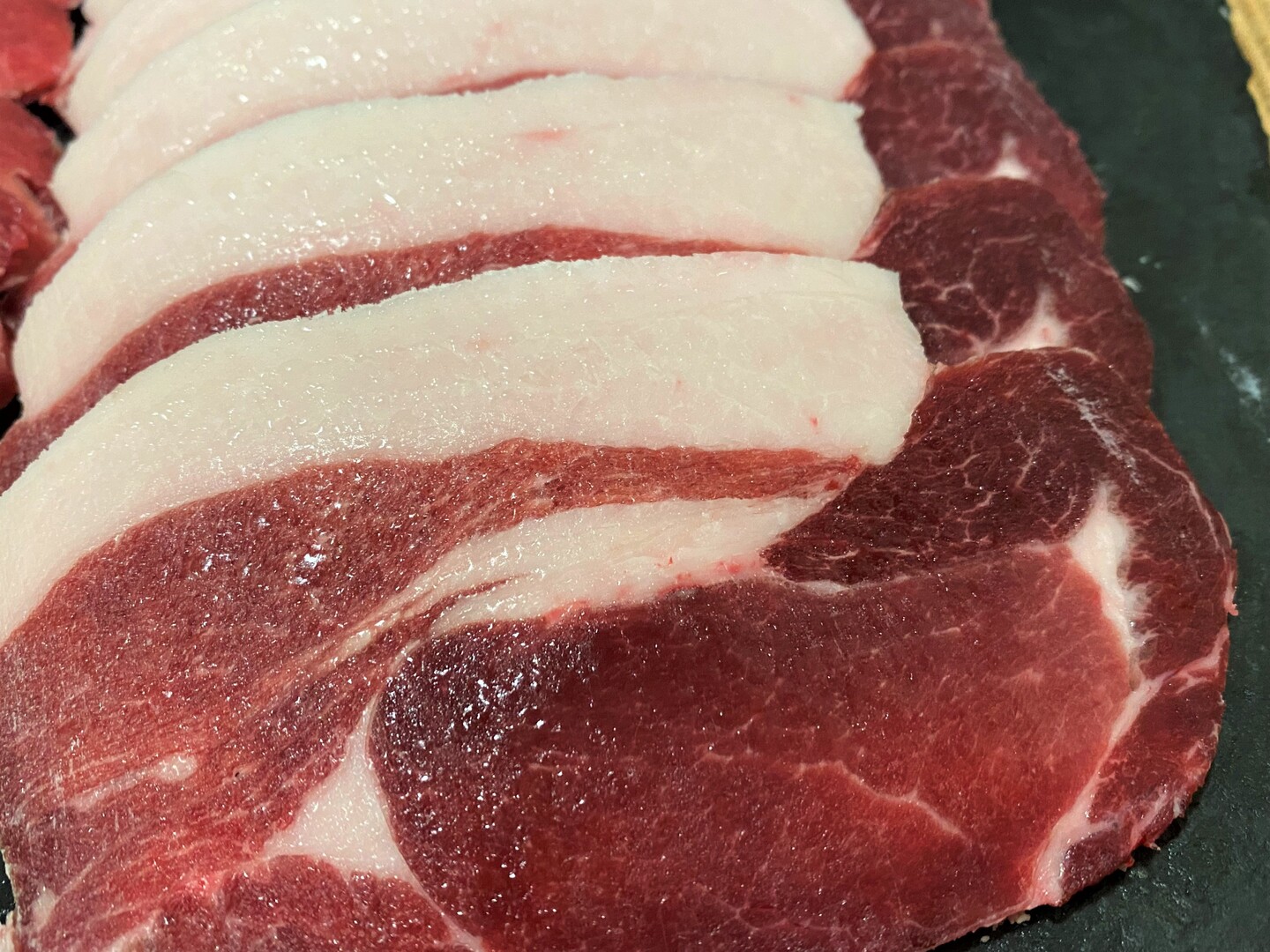 衛生的な処理施設からのお肉・スライス1枚1枚丁寧に並べ真空(120g~200gずつ小分けにしてあります)