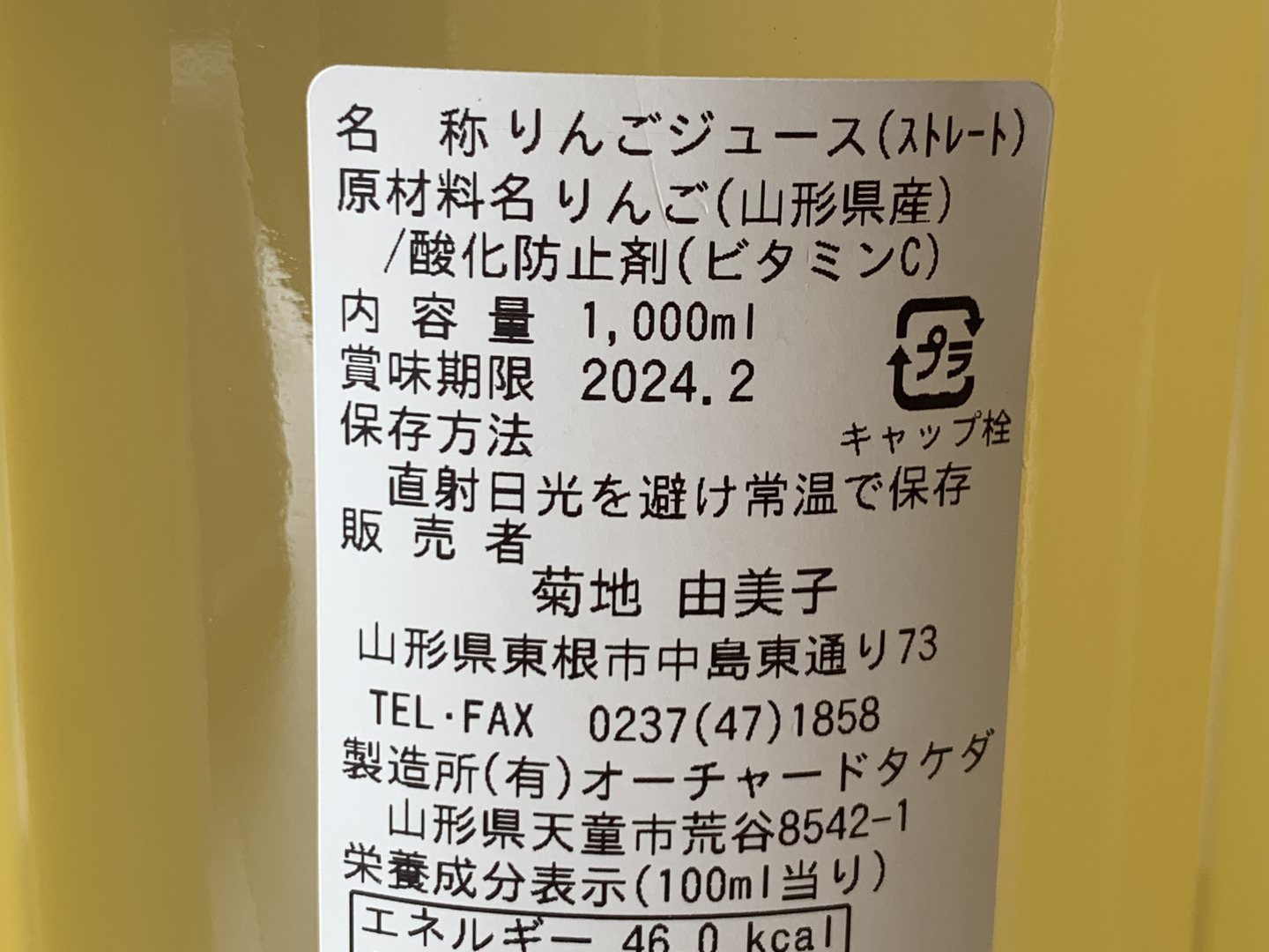 原材料名:ふじりんご、酸化防止剤(ビタミンC)