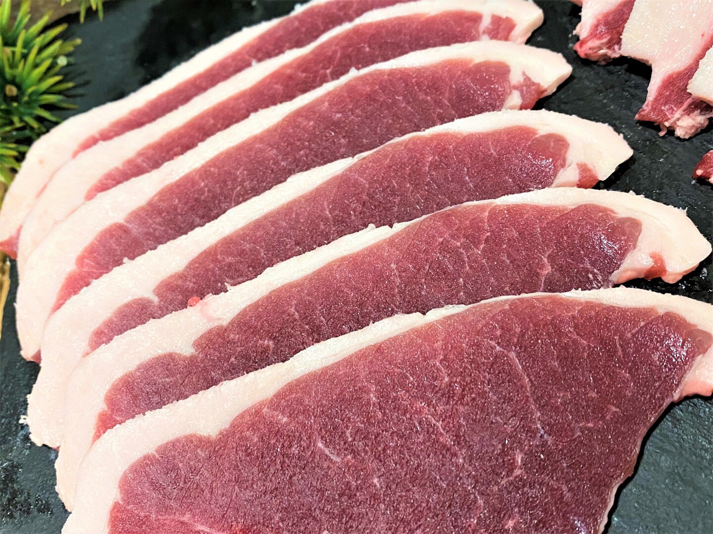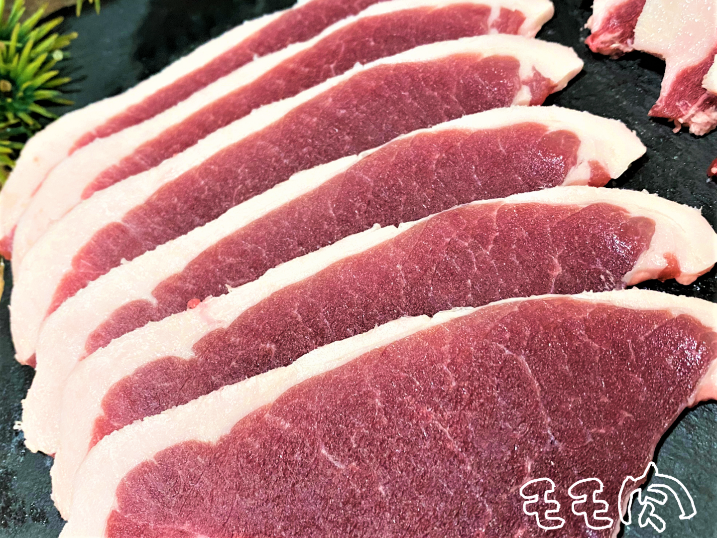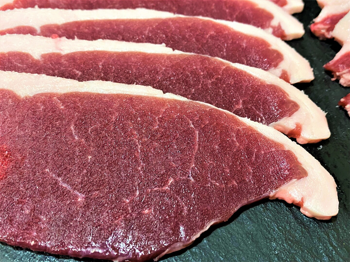 衛生的な処理施設からのお肉・スライス1枚1枚丁寧に並べ真空(120g~180gずつ小分けにしてあります)