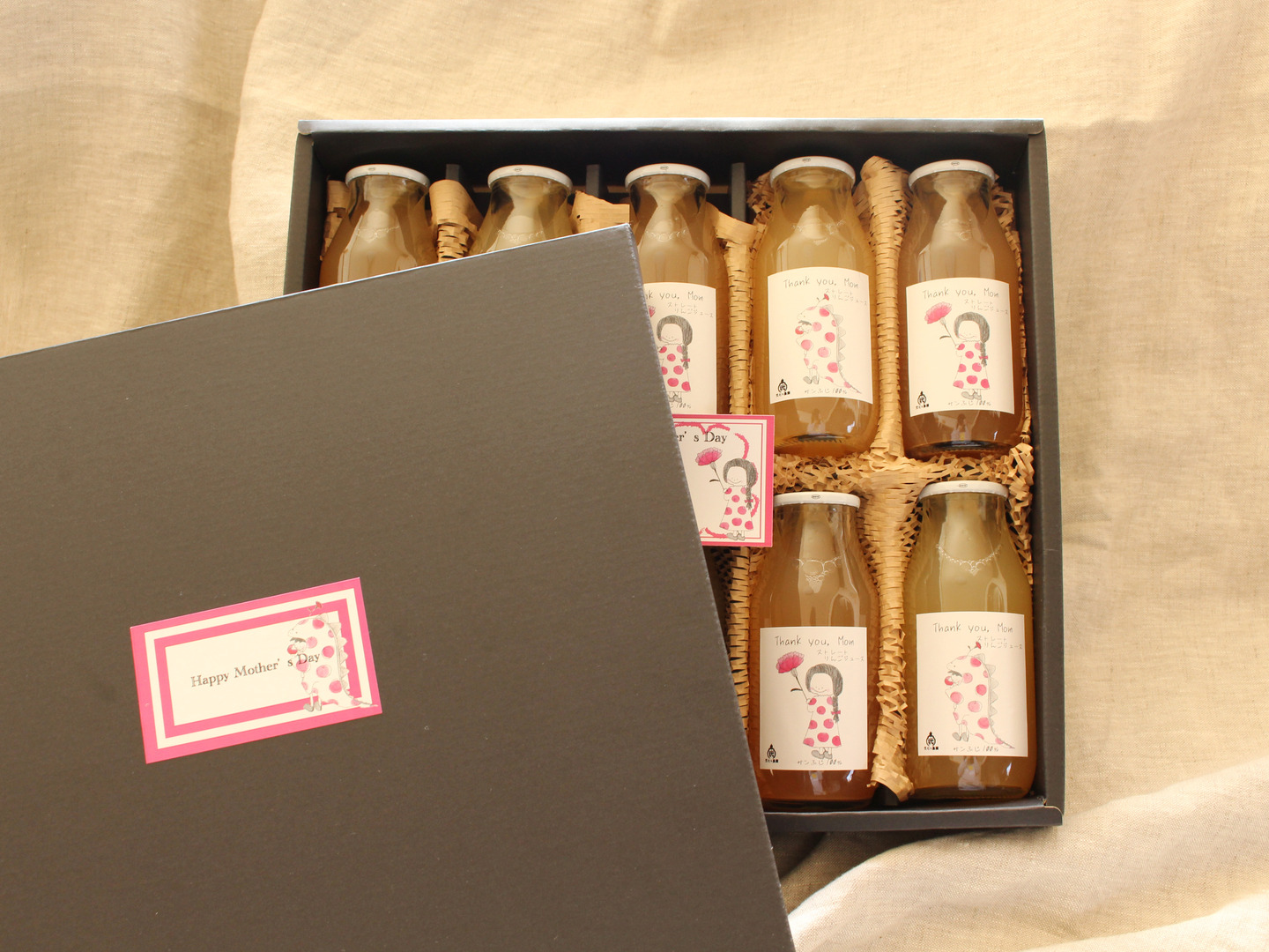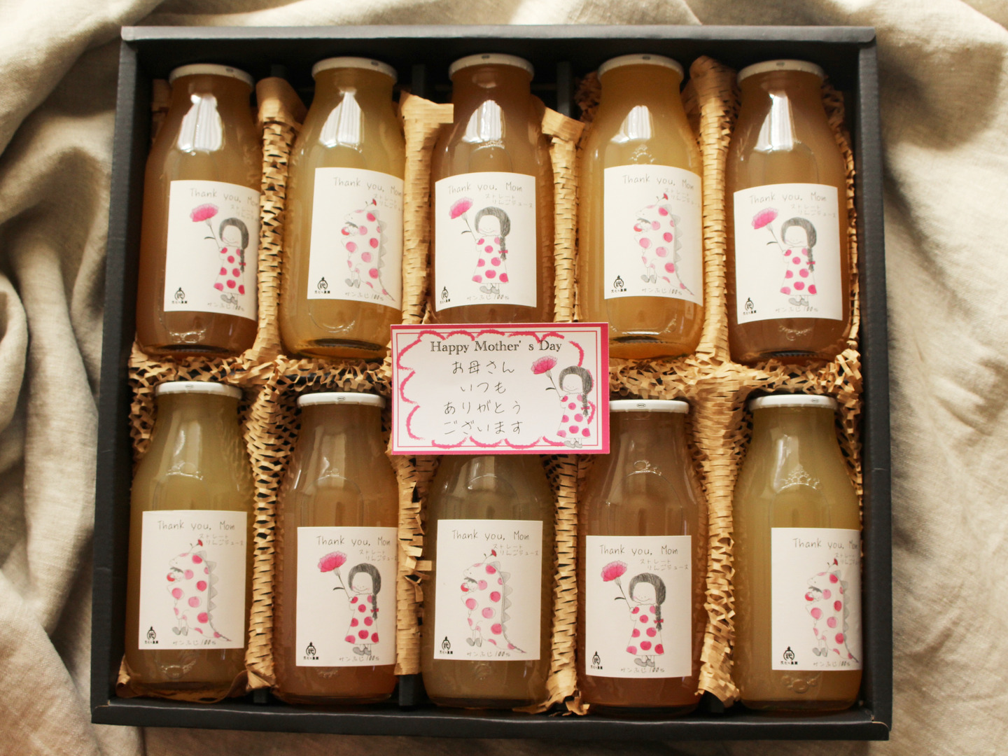 | 内容 | りんごジュースミニボトルサンふじ10本セット〜母の日ラベル〜 | ||||||
