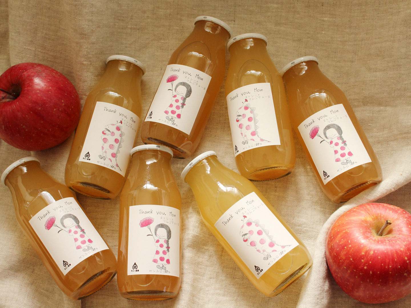 【母の日ギフト】母の日限定ラベル☆りんご100%ストレートジュース180ml飲みきりサイズ10本入り〜サンふじ2種〜