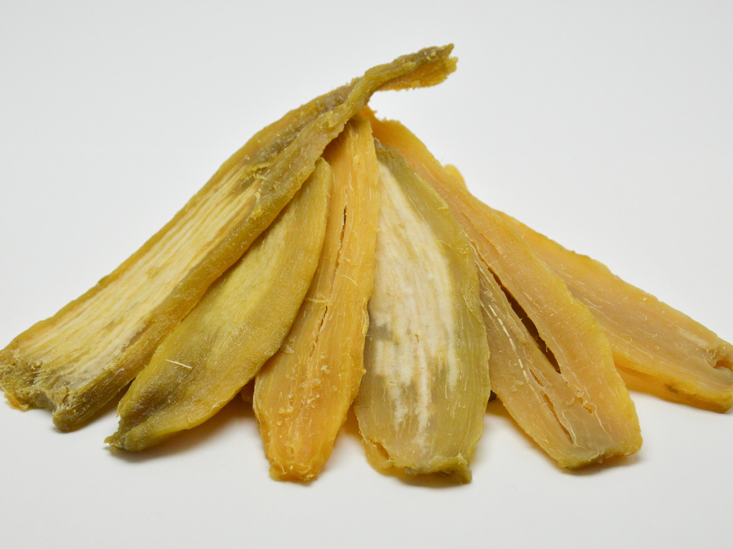さつまいもを蒸かして乾燥させただけの、自然に近い加工品ですので、芋の個体差や加工時期等により硬さ・糖度(甘味)・色の違いが生じます。