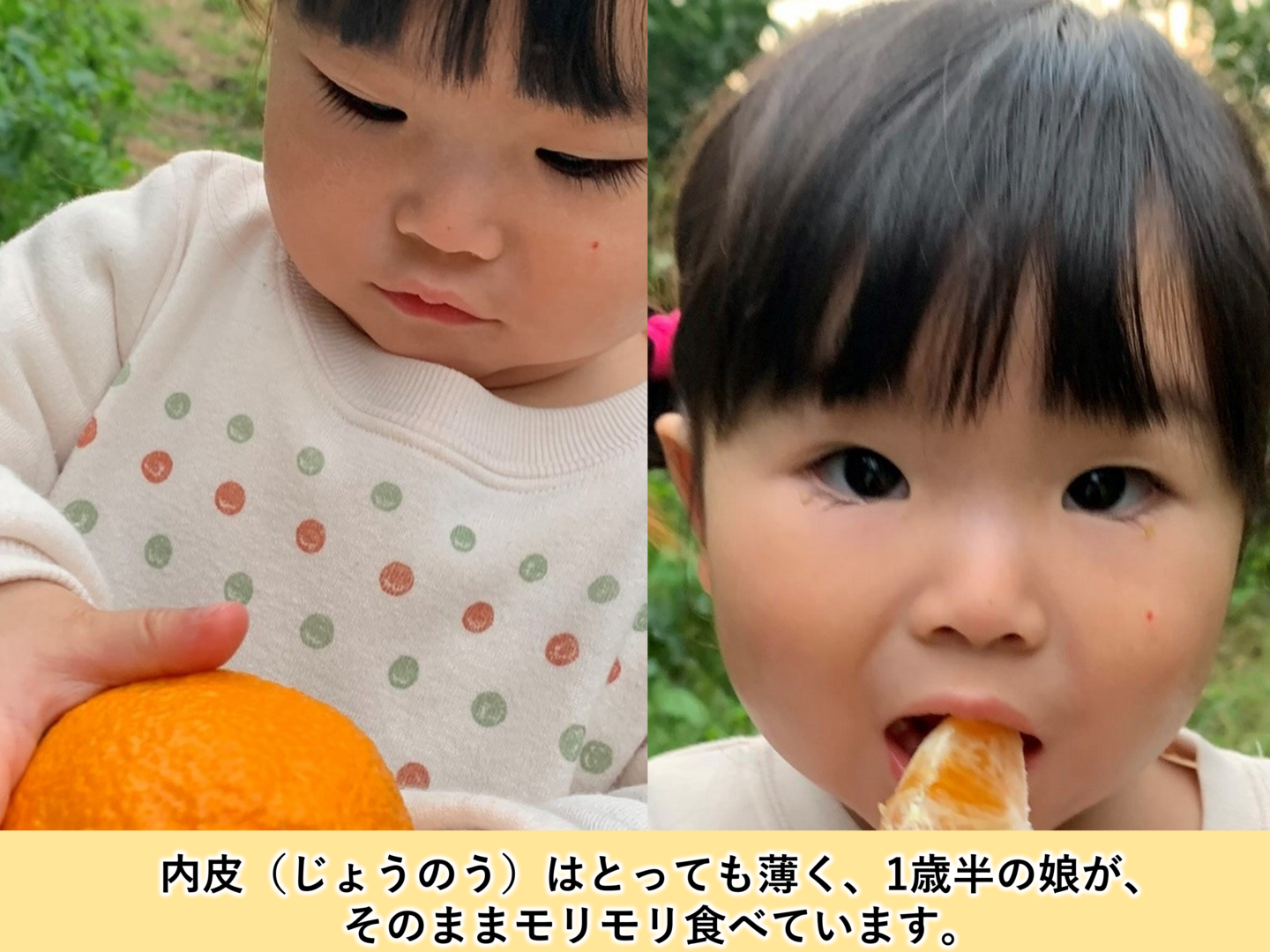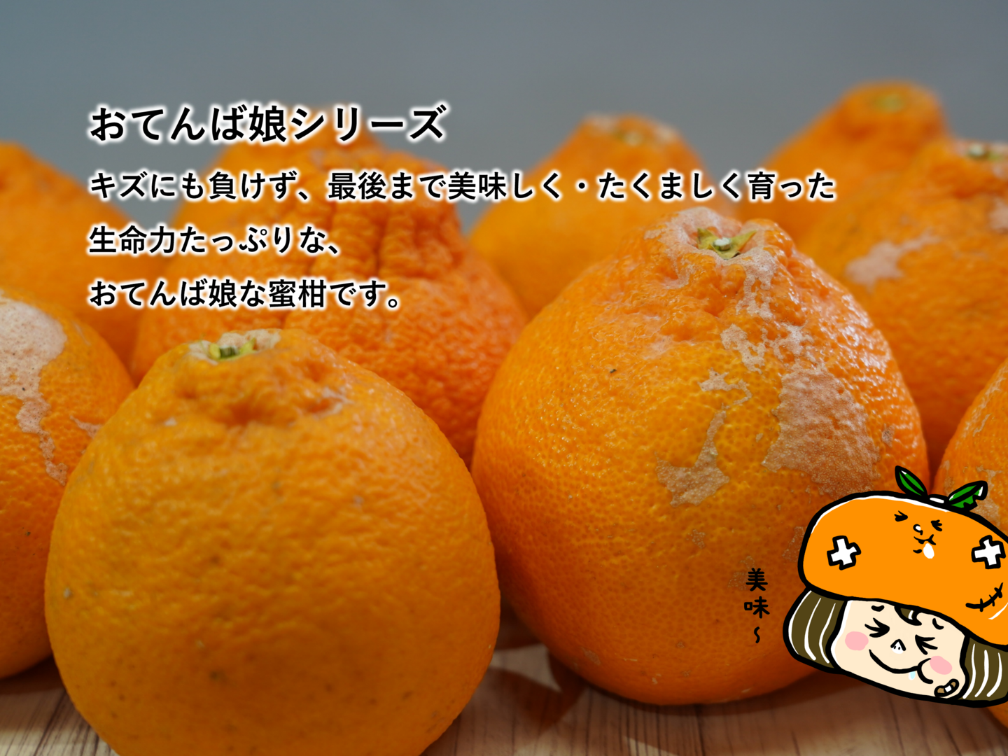 おーちゃん蜜柑園では、ケガをものともせず、元気いっぱい育ったキズ有みかんを『おてんば娘」と呼んでいます♡
