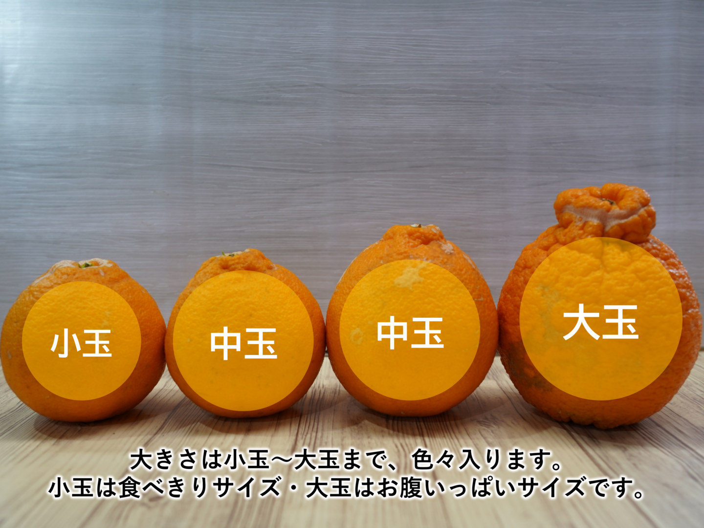 小玉 150g/玉 ~ 大玉 340g/玉 まで混合でお届けします。
