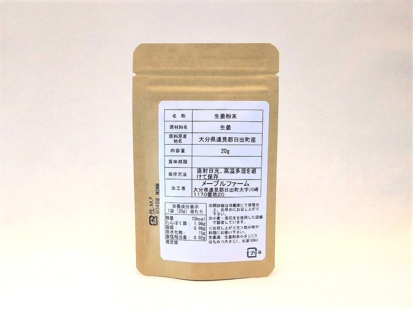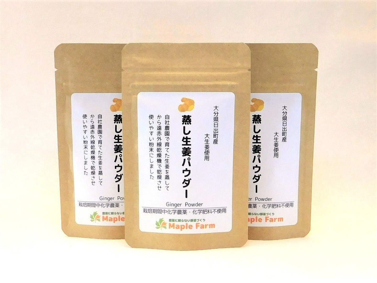 ピリッと辛い♪蒸し生姜パウダー20g×3袋(大分県産、栽培期間中農薬・化学肥料不使用、メール便発送)