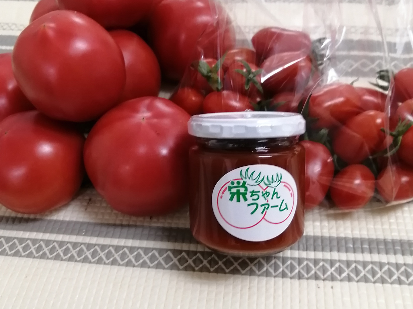 果肉が厚くしっかりとして、甘みもある栄ちゃんトマト&とにかく甘いプチトマト(アイコ)&トマト感たっぷり甘酸っぱいトマトジャム。