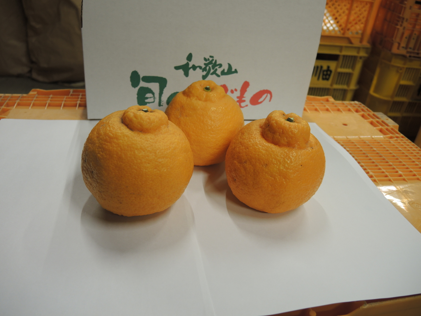 「三宝柑(さんぽうかん)」は和歌山特産の柑橘になります。寒さに弱いので栽培地が限定され海南市から有田郡の沿岸部で少量栽培されています。和歌山城内の原木から広まったと言われています。果実を三宝に載せて城主に献上したのが名前の由来です。