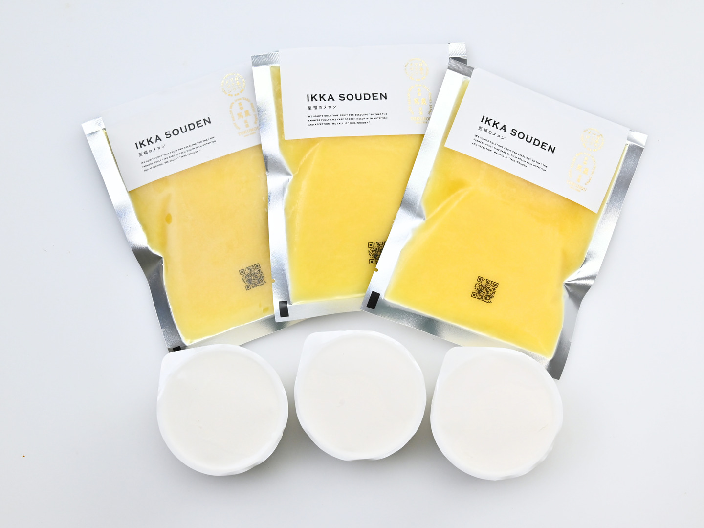 | 内容 | 完熟マスクメロンピューレ120g ×3 袋 + メロンによく合う高知のバニラアイス 80ml × 3個 | ||||||