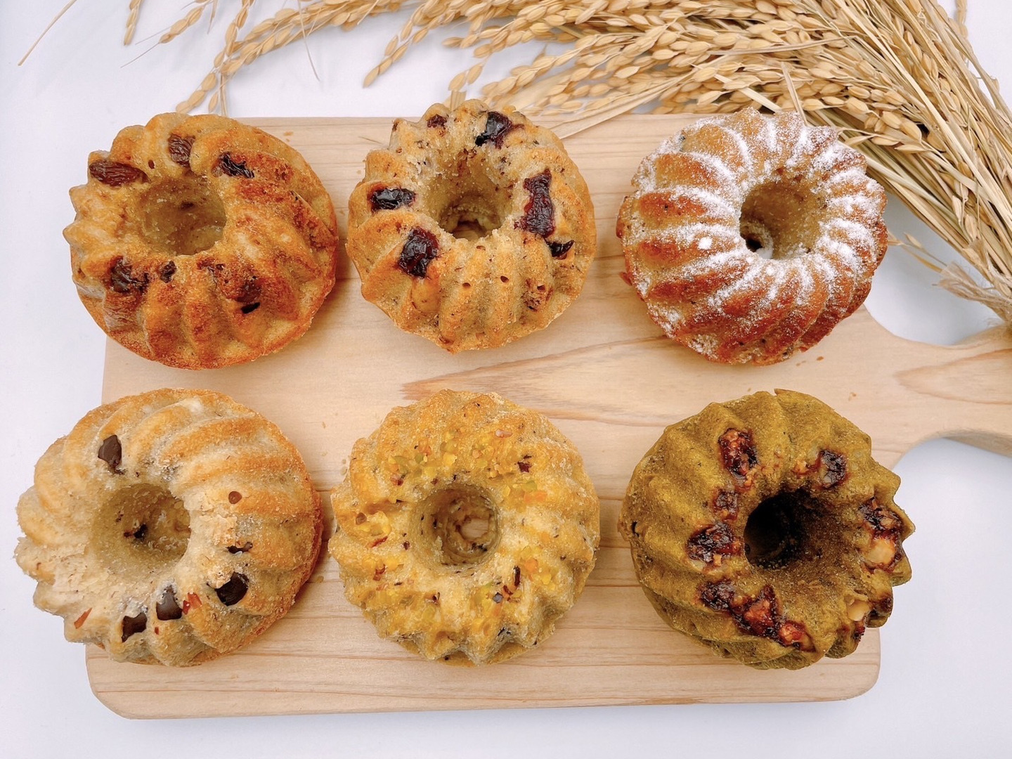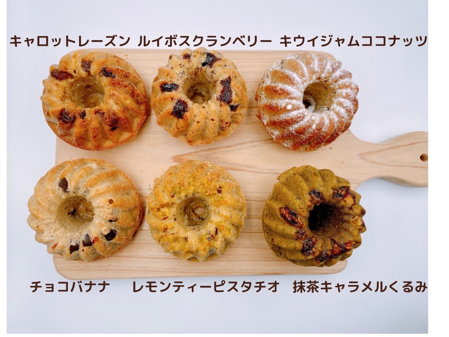 お米のマフィン(キャロットレーズン、ルイボスクランベリー、キウイジャムココナッツ、チョコバナナ、レモンティーピスタチオ、抹茶キャラメルクルミ)